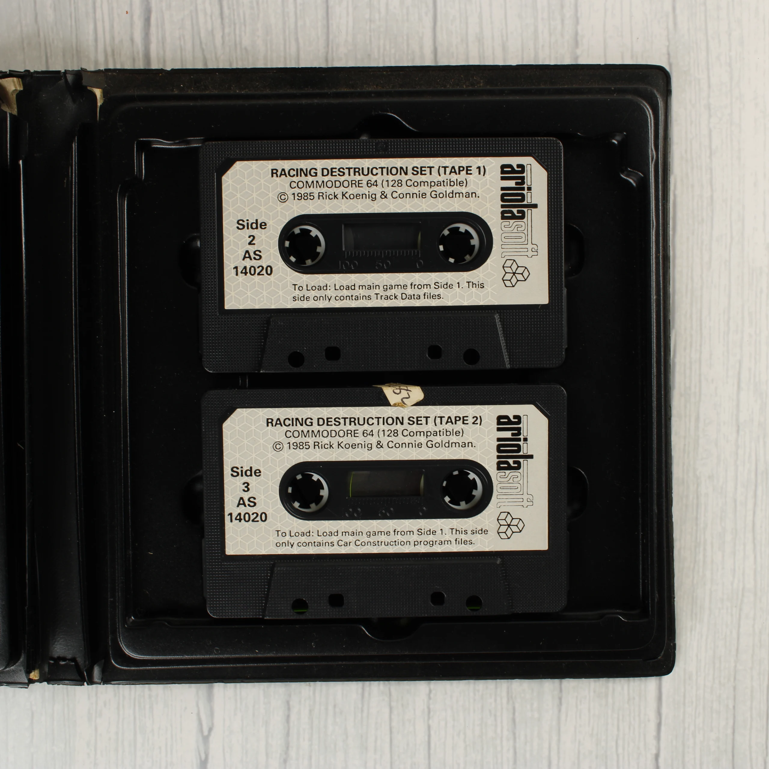 Racing Destruction Set videójáték Commodore 64-re. Ariolasoft kiadás, kétkazettás kiszerelés eredeti műanyag tokban.