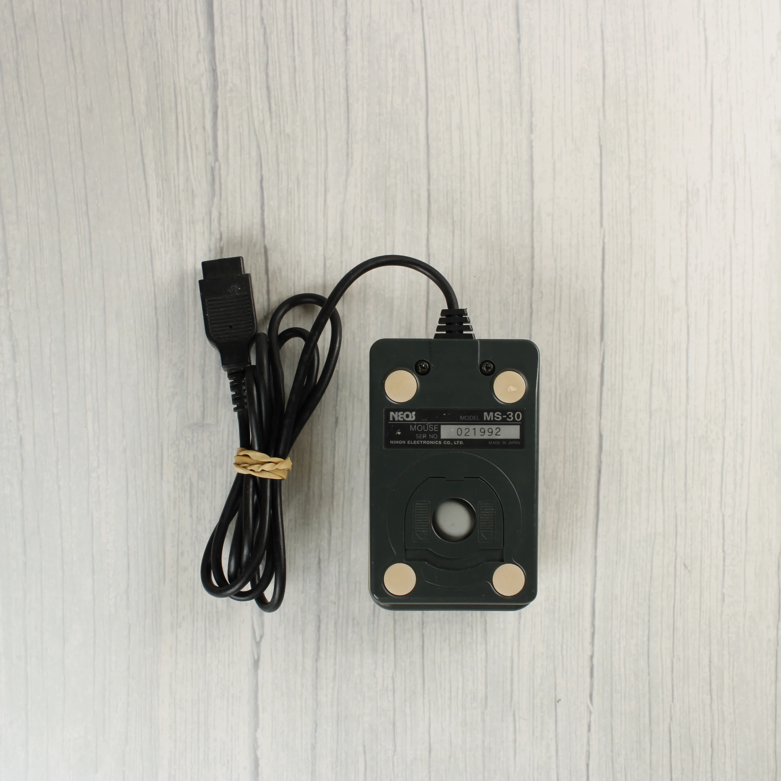A NEOS MS-30 egy klasszikus, téglalap alakú számítógépes egér a 8 bites korszakból. A készülék háza világosszürke műanyagból készült, amelyen két nagyméretű, kék színű nyomógomb található. Az egér elején dombornyomott NEOS logó látható. A fekete színű kábel DB9 csatlakozóban végződik, és gumiszalaggal van összefogva. Az eszköz alja sötétszürke, ahol négy kerek, világos színű csúszótalp és a görgőnyílás található. A hátoldali matricán a Model MS-30 felirat és a 021992-es sorozatszám olvasható. A burkolaton használatból eredő apró karcok és minimális elszíneződés látható, de az egér szerkezetileg épnek tűnik.