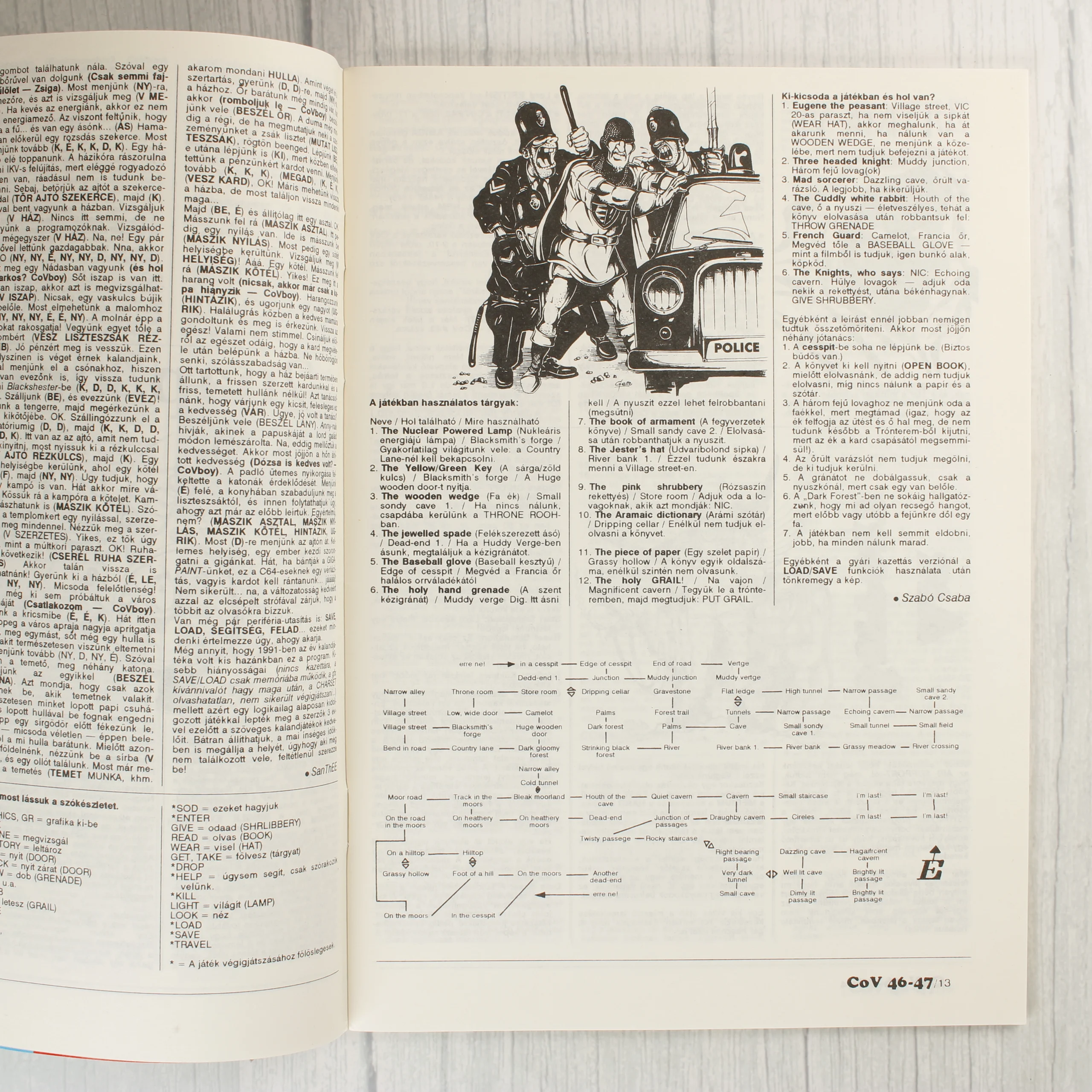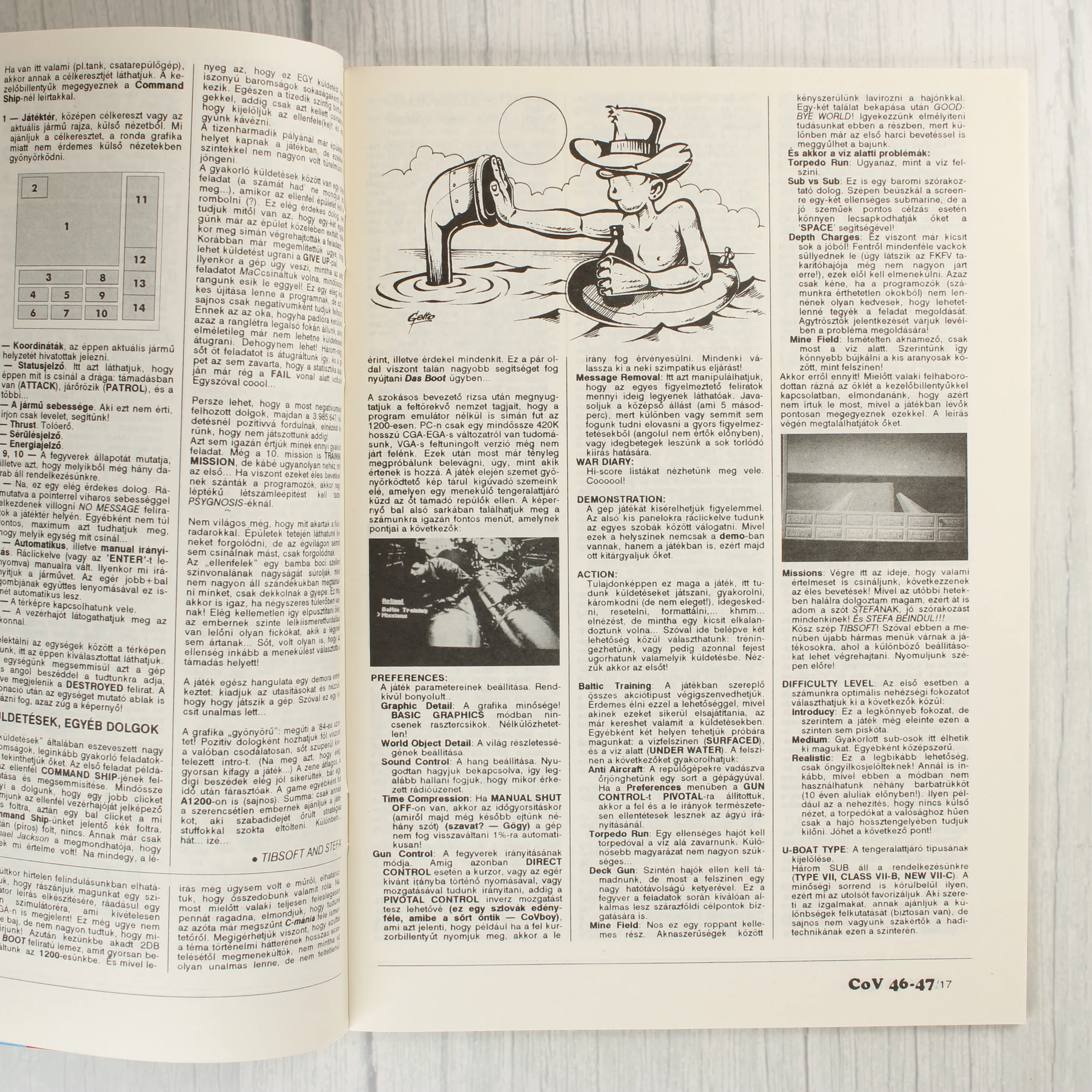 A Commodore Világ (COV) számítástechnikai magazin 1994. július-augusztusi, 46/47-es összevont száma. A színes borítón egy vicsorgó, sárga szemű szörnyeteg látható, mellette pedig különböző videójátékokból származó képernyőmentések kaptak helyet, mint például az Alien Breed 2, az Air Support, a Das Boot és az UFO. A címlapon kiemelt platformok a C64, Amiga, PC és Plus/4. A belső oldalak fekete-fehér nyomásúak, szöveges leírásokat, játékismertetőket, térképeket és illusztrációkat tartalmaznak. A papír az éleknél enyhén sárgult, ami a korából adódó természetes jelenség. A magazin tűzött kötésű, a borító fényes felületű.