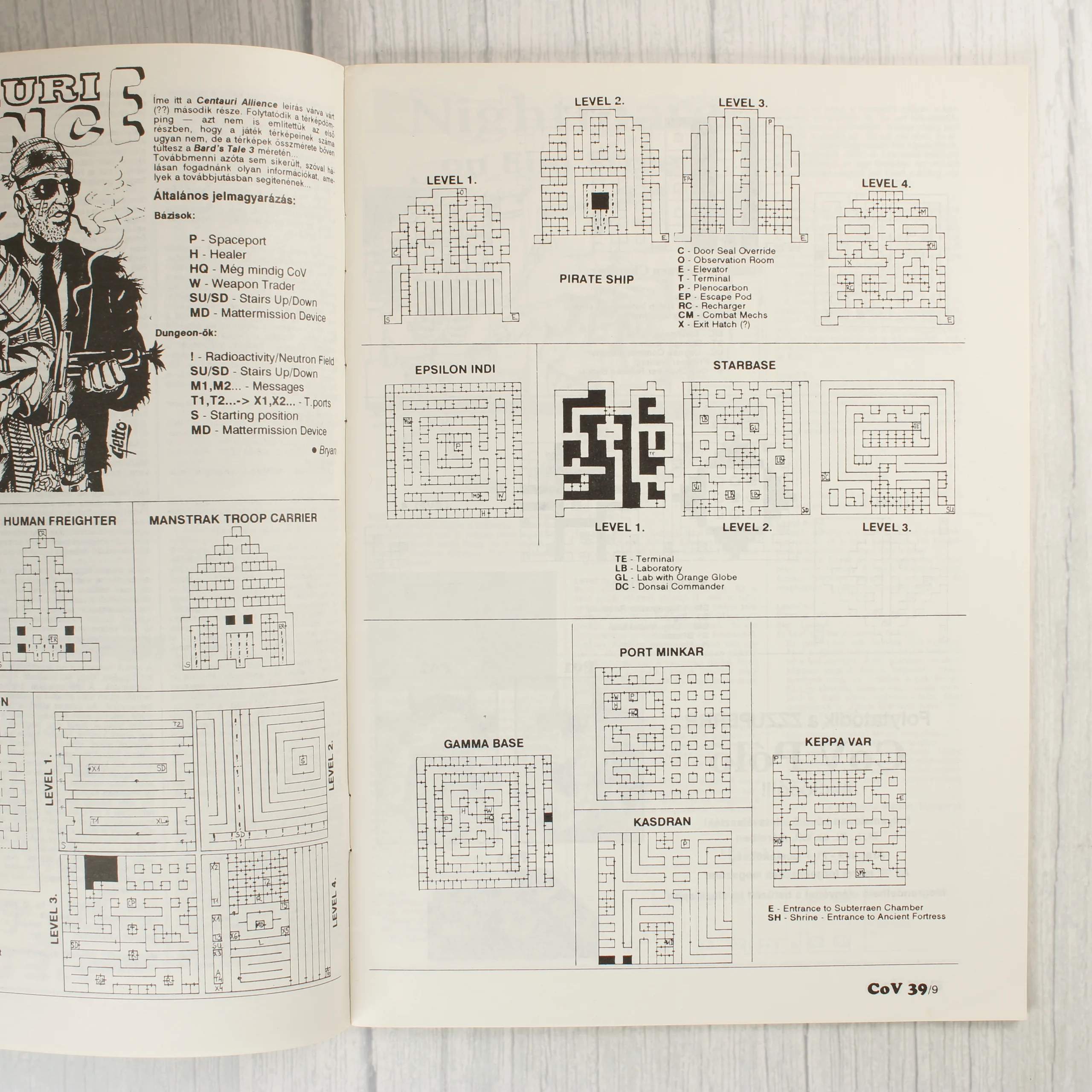 A Commodore Világ (COV) számítástechnikai magazin 39. száma, amely 1993 szeptemberében jelent meg. A színes borítón egy szárnyas alak látható, körülötte népszerű korabeli videójátékok képernyőmentéseivel, mint például a Leisure Suit Larry 6, Jurassic Park és Syndicate. A kiadvány a C64, Amiga, PC és Plus/4 platformokkal foglalkozik. A belső oldalak fekete-fehér nyomásúak, sűrűn szedett szöveggel, technikai leírásokkal és játékokhoz kapcsolódó térképekkel. A papír az idő múlásával enyhén sárgult, de a szövegek és ábrák tisztán kivehetőek. A magazin tűzött kötésű, a gerinc mentén minimális kopás tapasztalható.