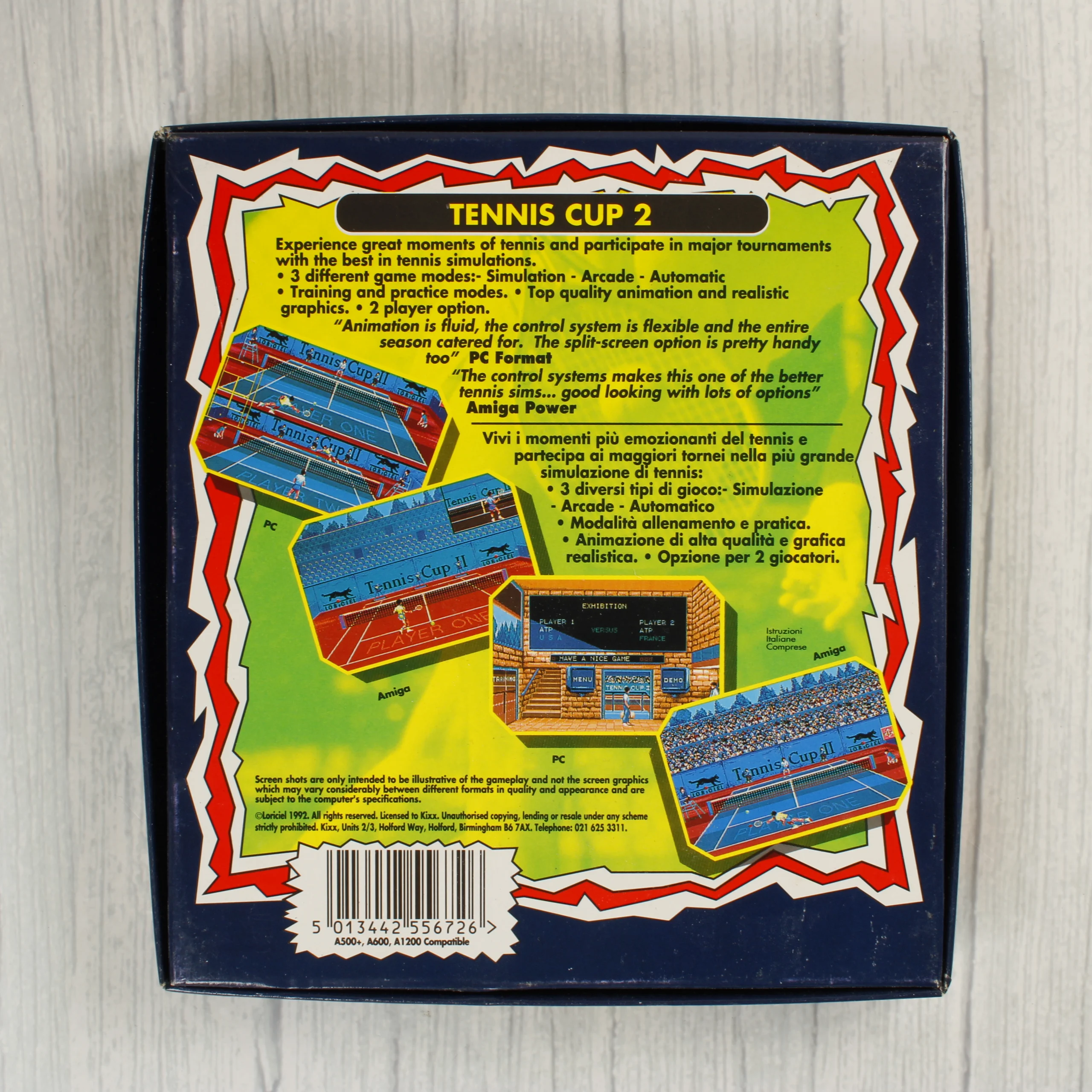 Tennis Cup 2, Amiga, videójáték, retro, floppy lemez, Kixx, Loriciel, tenisz szimulátor