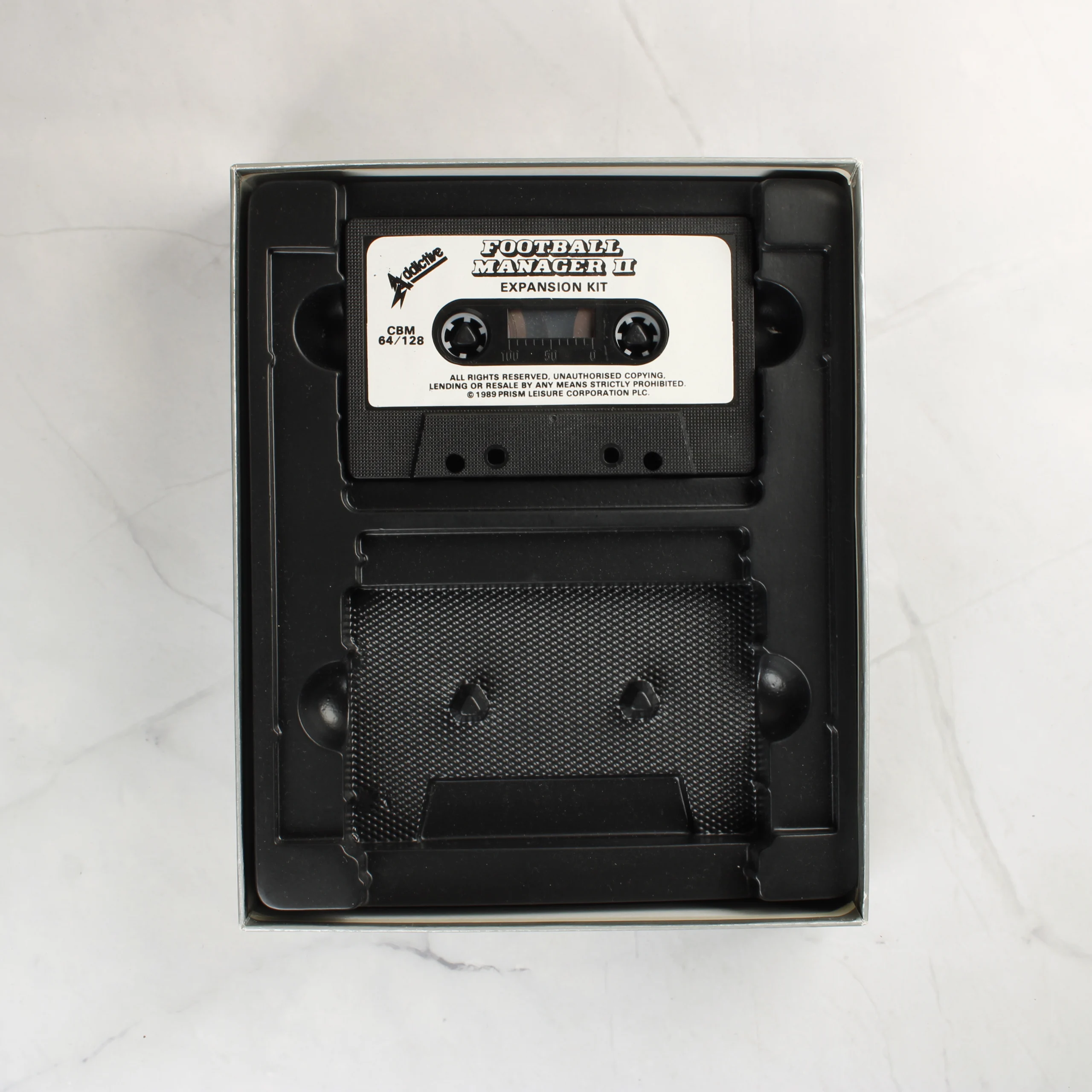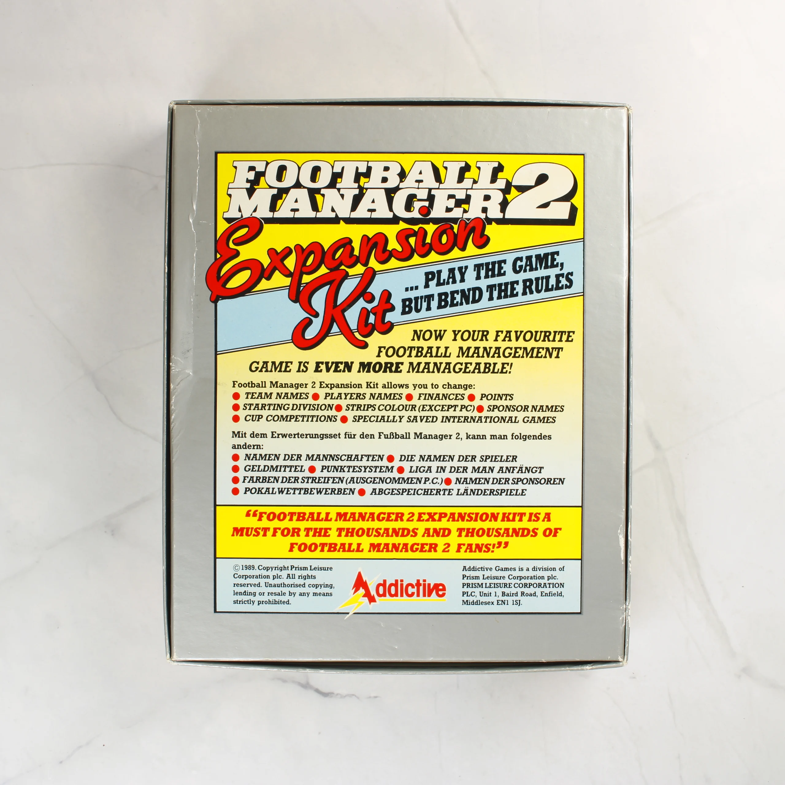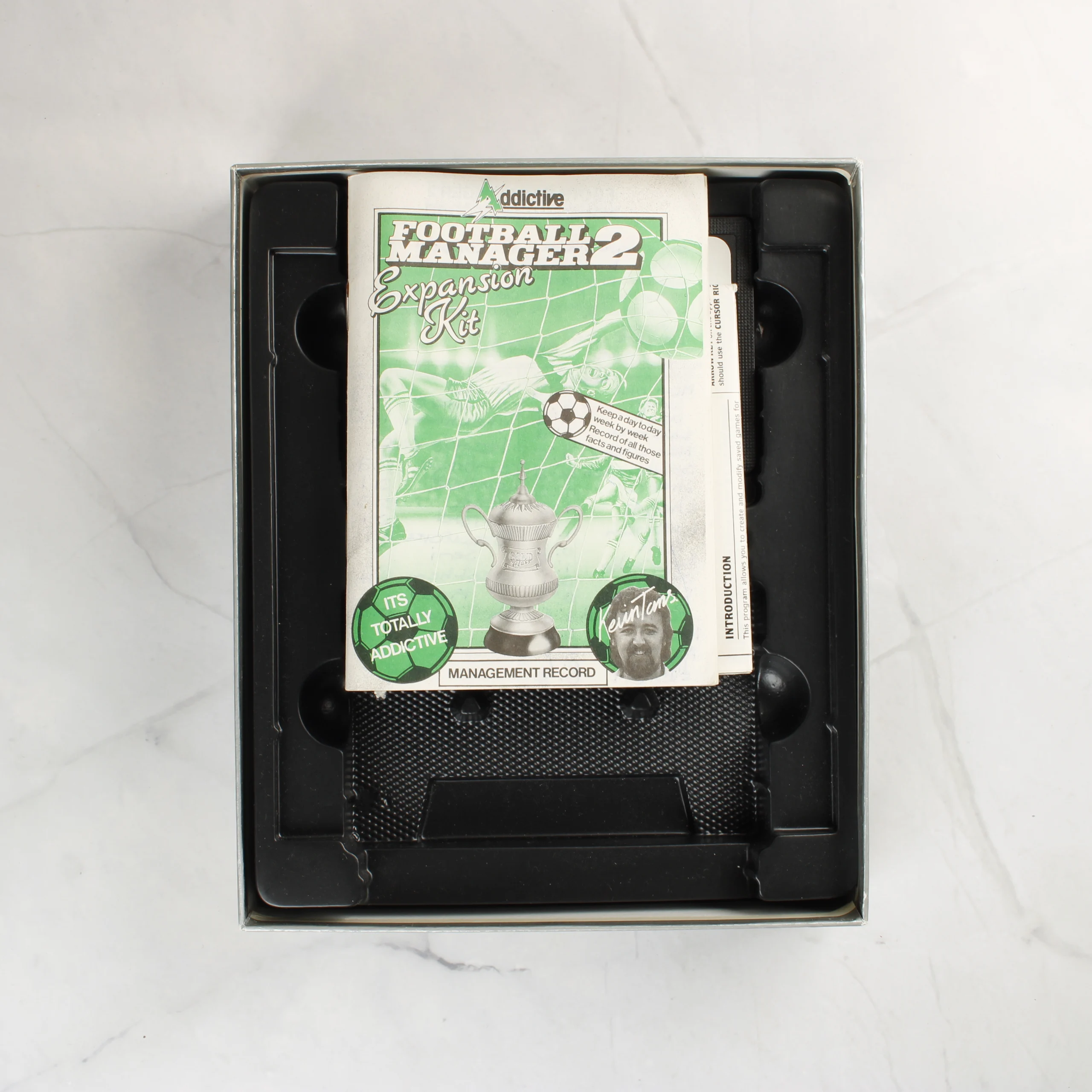 A Football Manager 2 Expansion Kit egy Commodore 64 és 128 rendszerekhez készült videójáték kiegészítő csomag. A termék egy ezüstszínű kartondobozban található, amelynek elején színes grafika látható egy kapussal, egy arany kupával és Kevin Toms arcképével. A csomag tartalmaz egy fekete színű mágneskazettát, amelyen fehér címke jelzi a szoftver adatait, valamint egy papíralapú használati útmutatót és egy Management Record füzetet. A doboz hátoldalán angol és német nyelvű leírás olvasható a kiegészítő funkcióiról. A belső tárolást egy fekete műanyag tálca biztosítja, amelyben külön hely van kialakítva a kazetták számára.