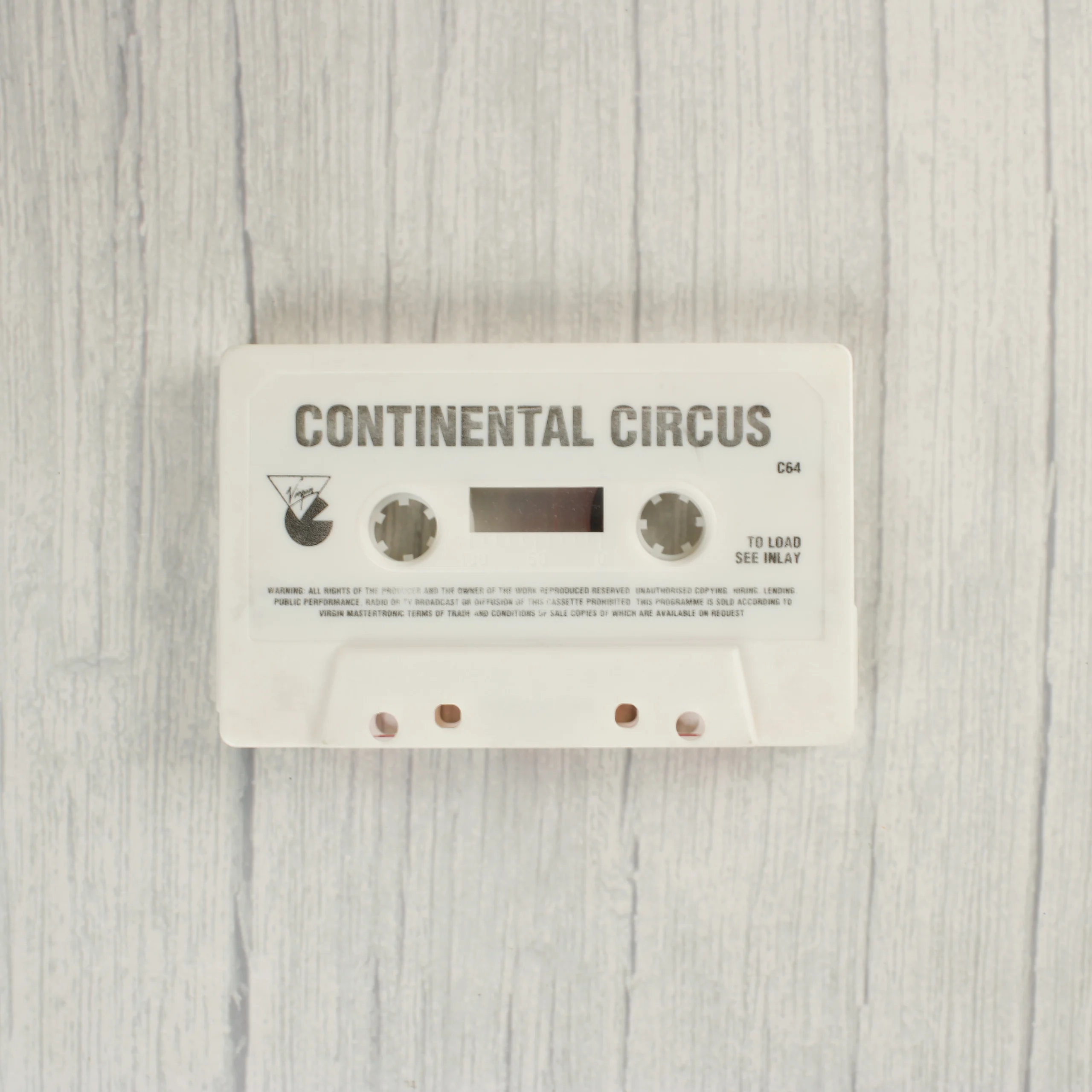 A Continental Circus egy autóversenyzős videójáték Commodore 64 platformra, amely kazetta formátumban jelent meg. A termék egy átlátszó műanyag tokban található, amelyben az eredeti színes borító is helyet kapott. A borítón egy piros versenyautó látható száguldás közben, felette a játék címe olvasható. A tok elején több matrica is található, köztük egy piros kör alakú C64 CASSETTE feliratú és egy zöld, nyíl alakú promóciós matrica. A hátoldalon a játékból vett képernyőmentések és többnyelvű leírások láthatóak. A csomag tartalmazza a fehér színű, feliratozott mágnesszalagos kazettát is. A borító és a tok élei mentén enyhe kopás és használati nyomok fedezhetőek fel.