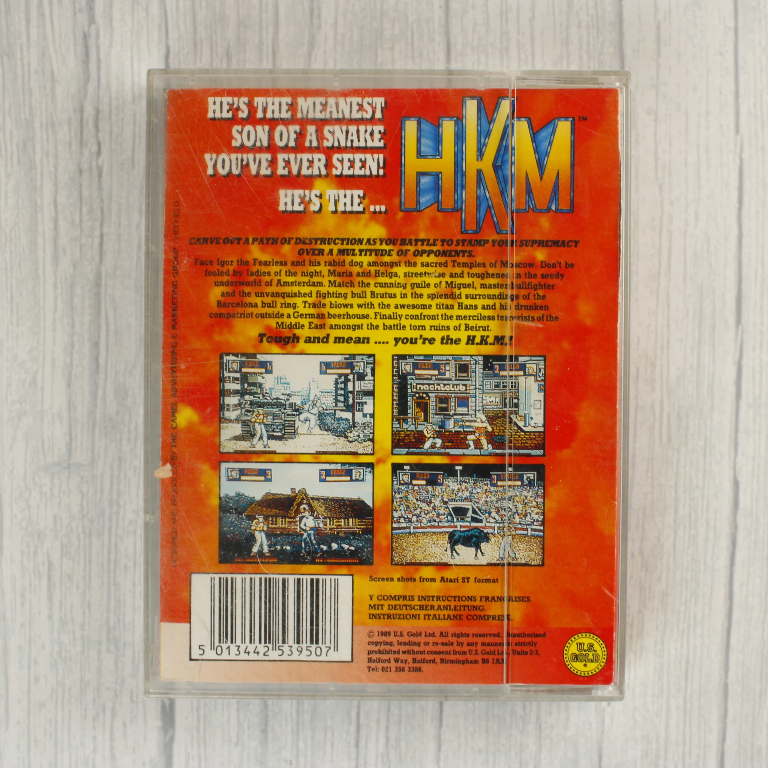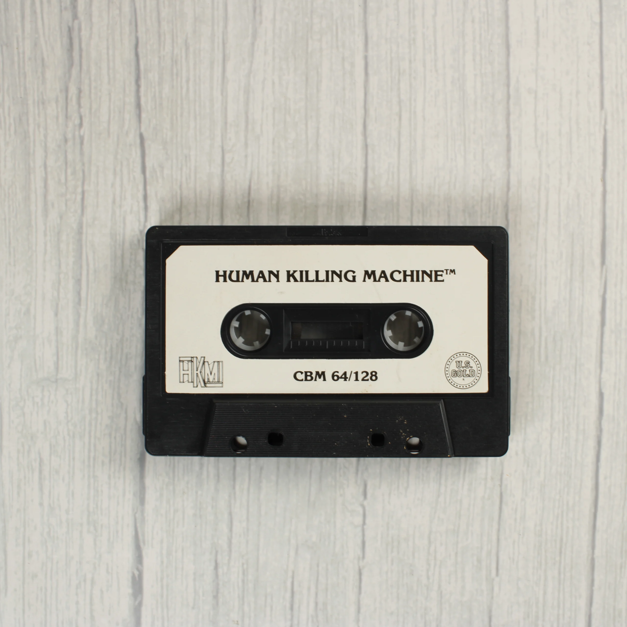 A Human Killing Machine (HKM) című videójáték Commodore 64 és 128 rendszerekhez készült kiadása. A csomag egy átlátszó műanyag tokot tartalmaz, amelyben a színes borító és az adathordozó kazetta található. A borító előlapján egy harcost ábrázoló grafika látható, a hátoldalon pedig a játékmenetből vett képernyőfotók és angol nyelvű leírás szerepel. A fekete színű kazetta fehér címkével rendelkezik, amelyen a játék címe és a platform megnevezése olvasható. A terméken látható az U.S. Gold kiadó logója. A csomagoláson és a kazettán használatból eredő kopások és kisebb szennyeződések figyelhetők meg.