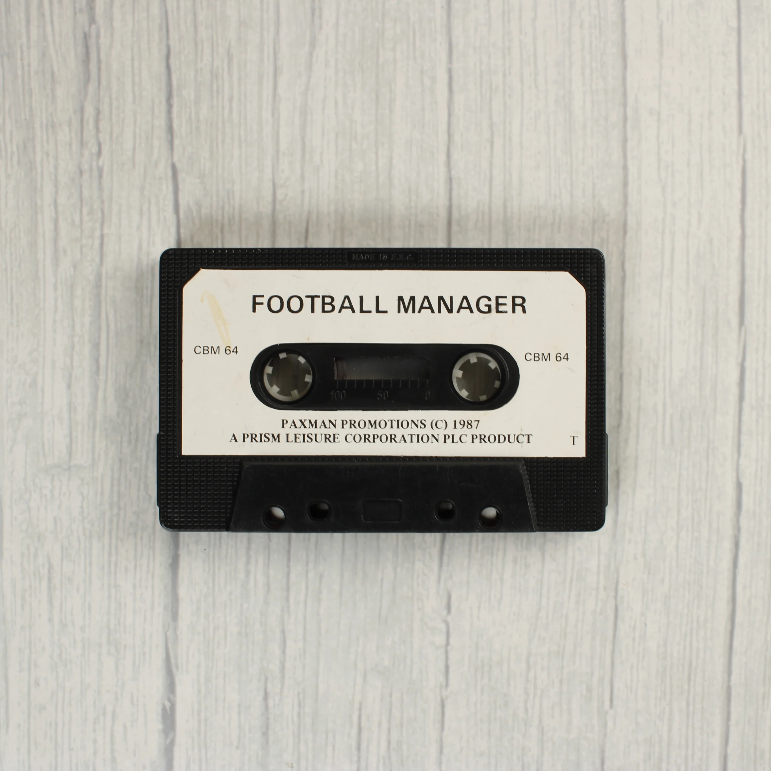 A Football Manager egy klasszikus labdarúgó-menedzser videójáték Commodore 64 platformra. A csomag tartalmazza az eredeti kék színű papírborítót, egy átlátszó műanyag tokot és egy fekete színű mágnesszalagos kazettát. A borítón Kevin Toms tervező arcképe és egy arany kupa előtt küzdő labdarúgók láthatóak. A kazettán fehér címke található, amelyen a játék címe és a Paxman Promotions 1987-es szerzői jogi adatai szerepelnek. A hátoldali borítón képernyőképek és a játék főbb jellemzői olvashatóak angol nyelven. A termék fizikai adathordozója egy szabványos magnókazetta, amelyet kifejezetten a C64-es számítógépekhez terveztek.