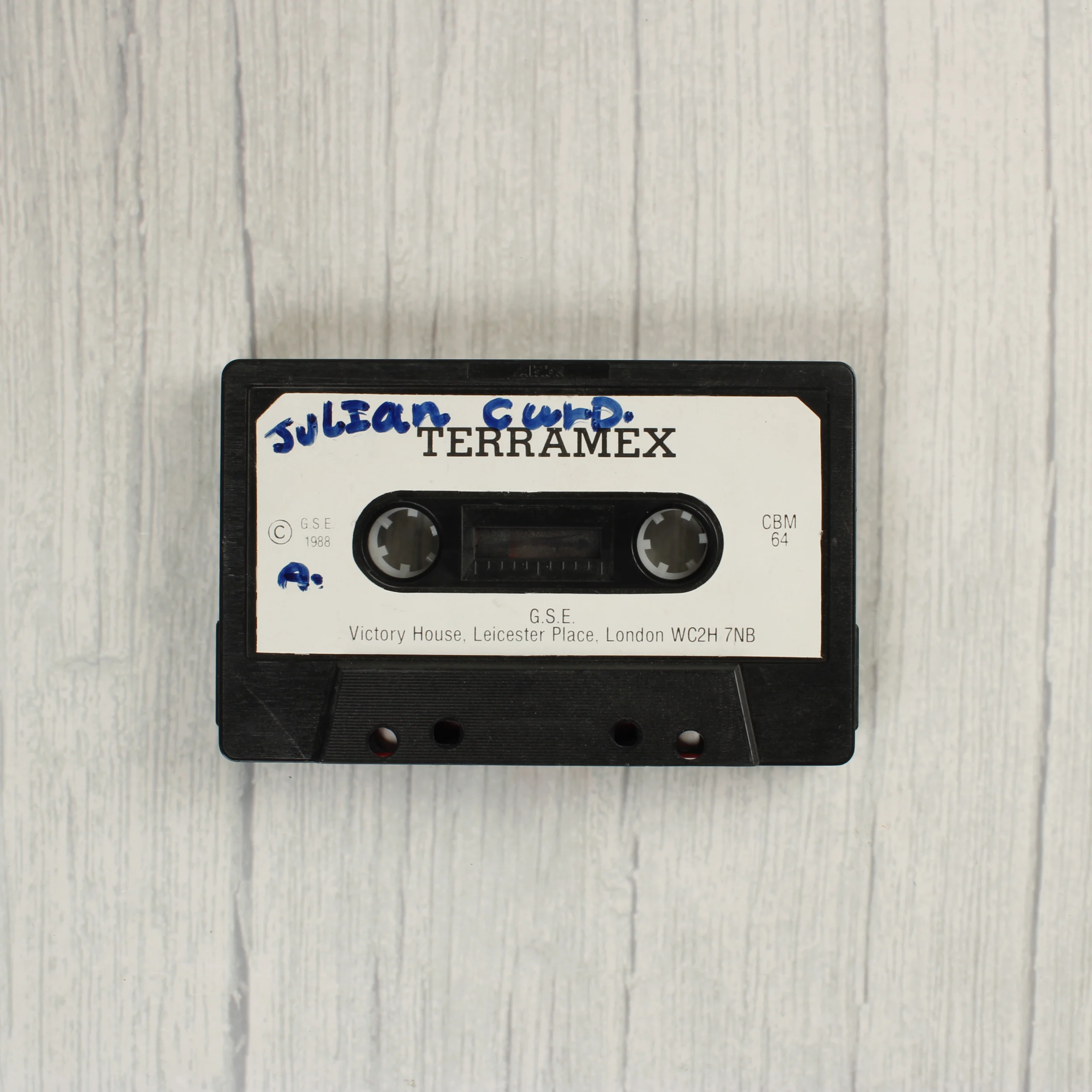 A Terramex című videójáték Commodore 64 platformra készült kiadása, amely egy átlátszó műanyag tokban található papírborítóval és egy fekete színű kazettával érkezik. A borító elején színes illusztráció látható öt felfedezővel, egy becsapódó meteorral és a játék címével. A hátoldalon három képernyőkép és angol nyelvű leírás olvasható a játékról. A kazetta fehér címkéjén a játék címe mellett kézzel írt kék tintás felirat látható. A termék a Grand Slam Entertainments gondozásában jelent meg 1988-ban.