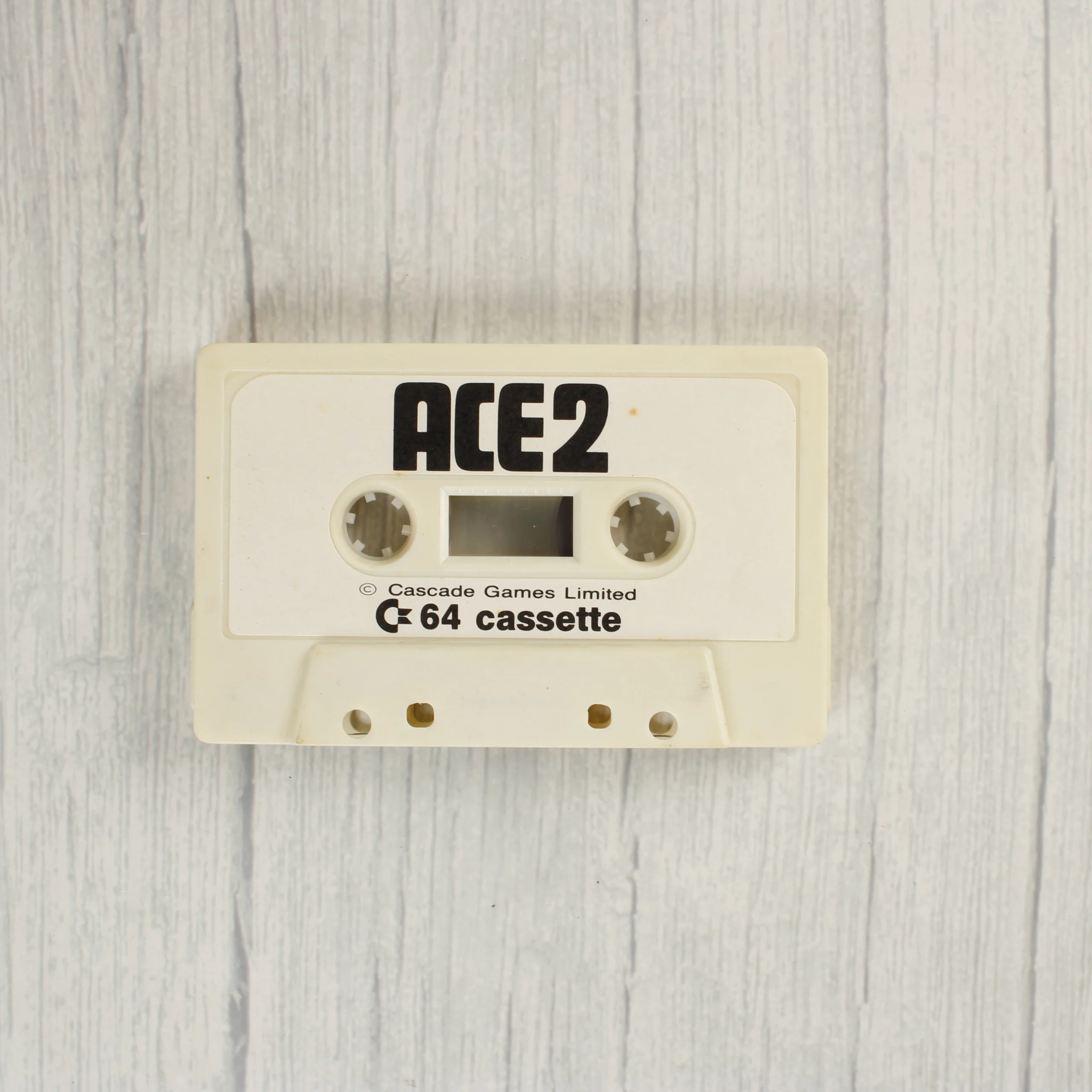 Az ACE 2 egy Commodore 64 platformra megjelent repülőgép-szimulátor videójáték, amely Cascade Games Limited kiadásában került forgalomba. A csomag egy átlátszó műanyag tokot tartalmaz, amelyben a színes borító és a fehér színű adathordozó kazetta található. A borító elején egy vadászgép látható harci bevetés közben, felette két pilótasisakkal és a piros színű ACE 2 felirattal. A hátoldalon angol nyelvű leírás és képernyőmentések mutatják be a játékmenetet, beleértve a pilótafülke nézetet és a fegyverválasztó menüt. A kazetta fehér műanyag házzal rendelkezik, rajta fekete felirattal olvasható a játék címe és a C64 cassette megjelölés. A tokon egy régi árcímke maradványa látható a jobb felső sarokban. A termék az 1987-es évből származik, és a korának megfelelő esztétikai állapotban van.