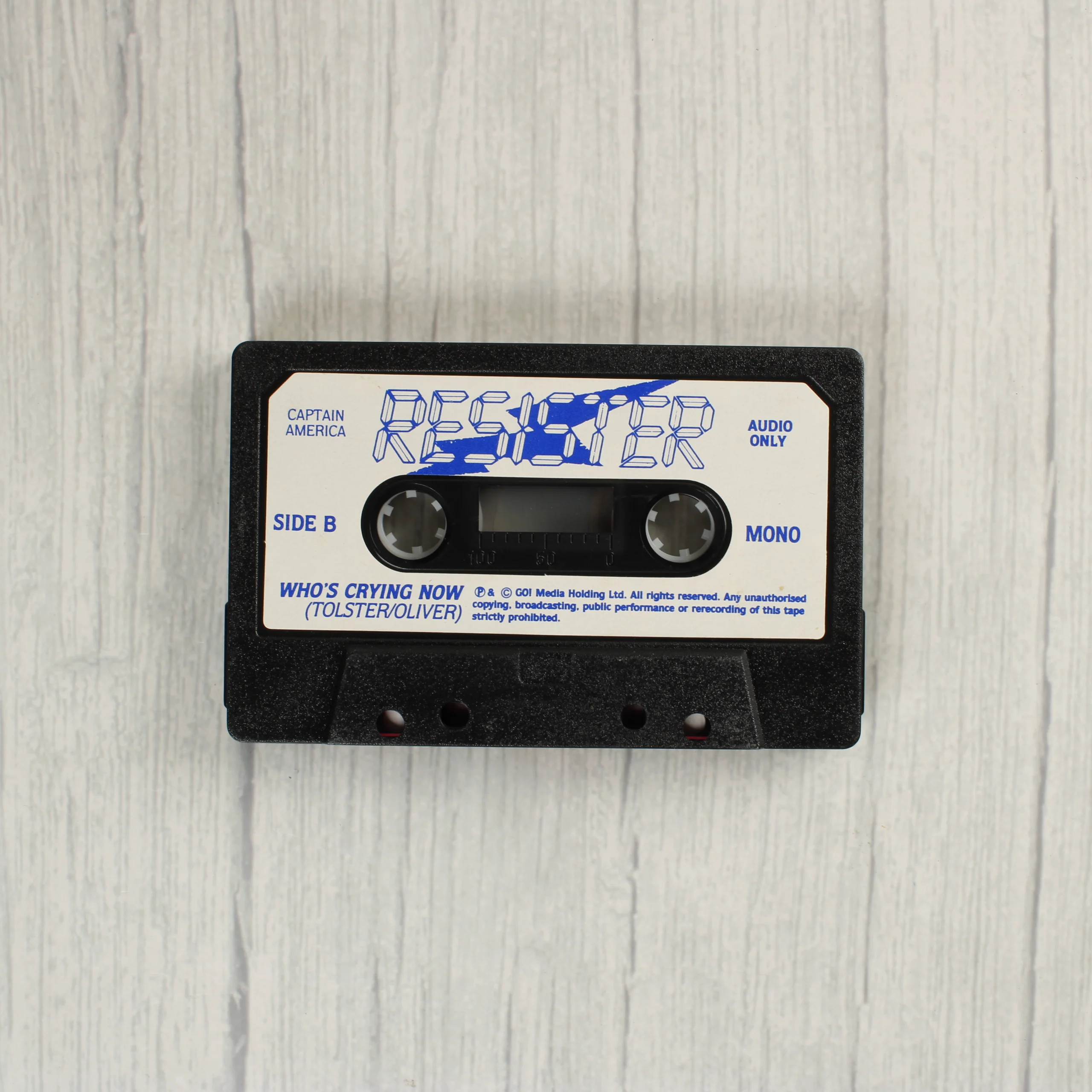 A Captain America in: The Doom Tube of Dr. Megalomann című videójáték Commodore 64 és 128 rendszerekre készült kiadása. A csomag egy átlátszó műanyag tokot tartalmaz, amelyben a színes, képregény stílusú borító látható Amerika Kapitány alakjával. A borítón egy kerek, fehér árkatalógus matrica található. A hátoldalon a játék történetének leírása és képernyőmentések láthatóak. A mellékelt fekete színű kazetta fehér címkével rendelkezik, amelyen a Resister felirat és a B oldal jelzése olvasható. A kazetta mono hangzású és a GO! Media Holding gondozásában jelent meg.
