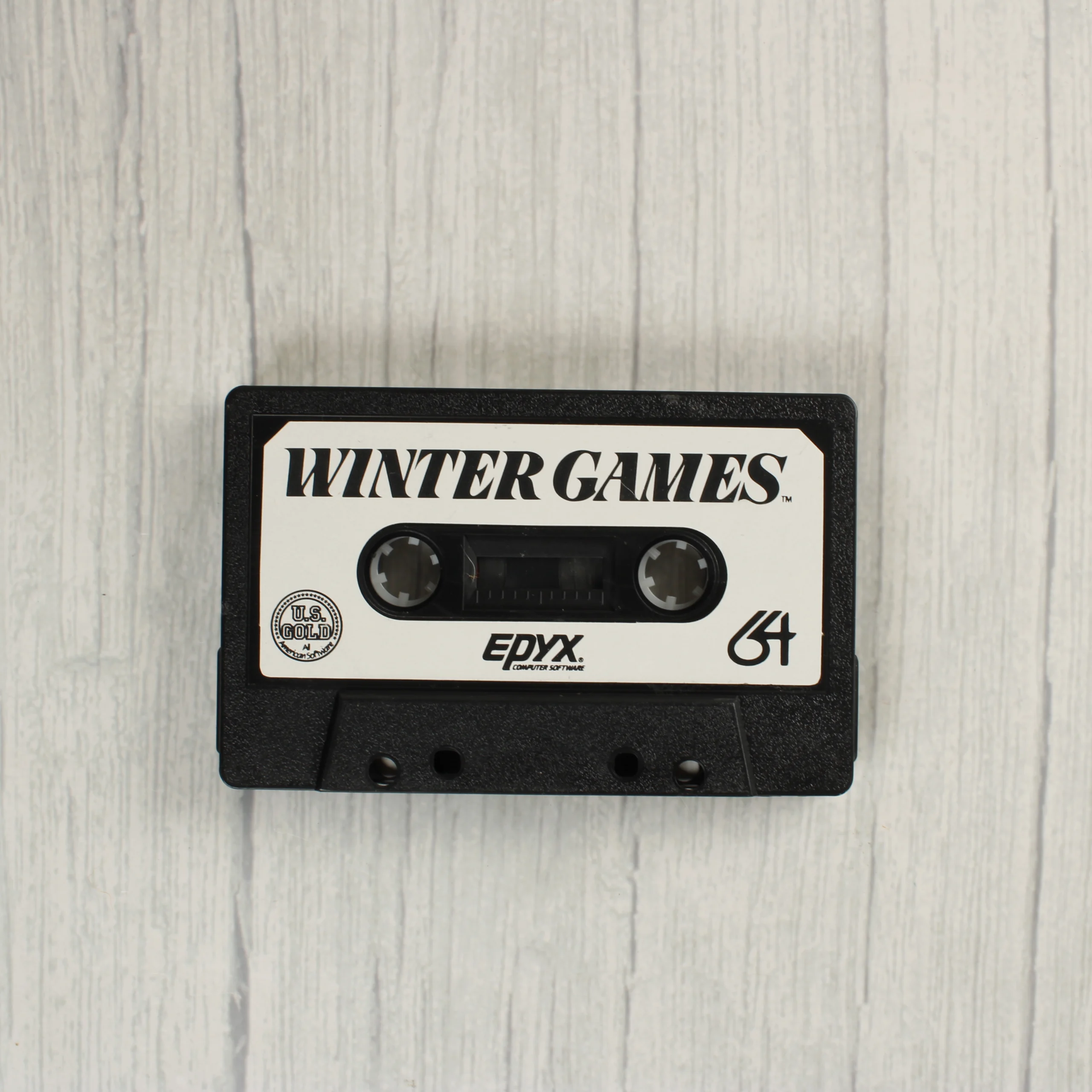 A Winter Games egy Commodore 64 platformra megjelent sportjáték, amelyet az Epyx fejlesztett és az U.S. Gold adott ki. A termék egy fekete műanyag tokban található, amelynek előlapján színes, téli sportokat ábrázoló illusztráció látható. A borítón síugrás, bob, műkorcsolya és biatlon jelenetei tűnnek fel egy központi, símaszkos alak körül. A csomag tartalmaz egy fekete színű mágnesszalagos kazettát, amelyen fehér alapon fekete felirattal szerepel a játék címe és a kiadók logói. A tok hátoldala fekete, felső részén fehér információs sávval, amely tartalmazza a vonalkódot és a játékban elérhető sportágak felsorolását. A műanyag tok felületén apróbb karcok és használati nyomok láthatóak, de szerkezetileg ép.