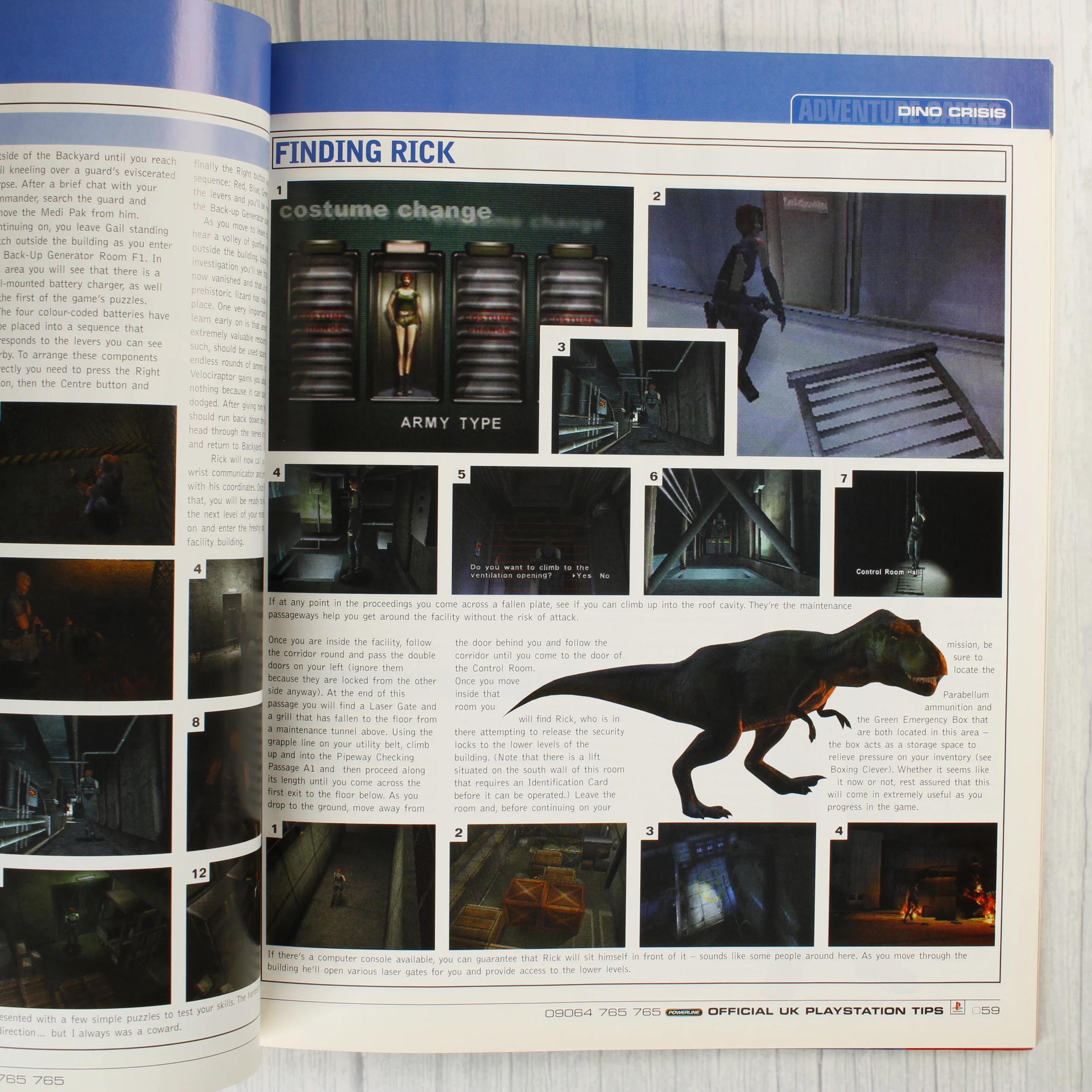 Az Official UK PlayStation Tips magazin 2000. novemberi száma. A borítón népszerű videójátékok karakterei és címei láthatók, többek között a WWF Smackdown!, Colin McRae Rally 2.0, Tony Hawk's Pro Skater, Dino Crisis, Syphon Filter 2, Medal of Honor és a Silent Hill. A magazin hét teljes útmutatót és több mint 5000 csalókódot ígér. A belső oldalakon részletes leírások találhatók a Tony Hawk's Pro Skater és a Dino Crisis játékokhoz, képernyőmentésekkel és taktikai tanácsokkal kiegészítve. A kiadvány angol nyelvű, a Future Publishing gondozásában jelent meg. A borító színes, fényes papírra nyomtatott, a korszakra jellemző grafikai elemekkel és tipográfiával.
