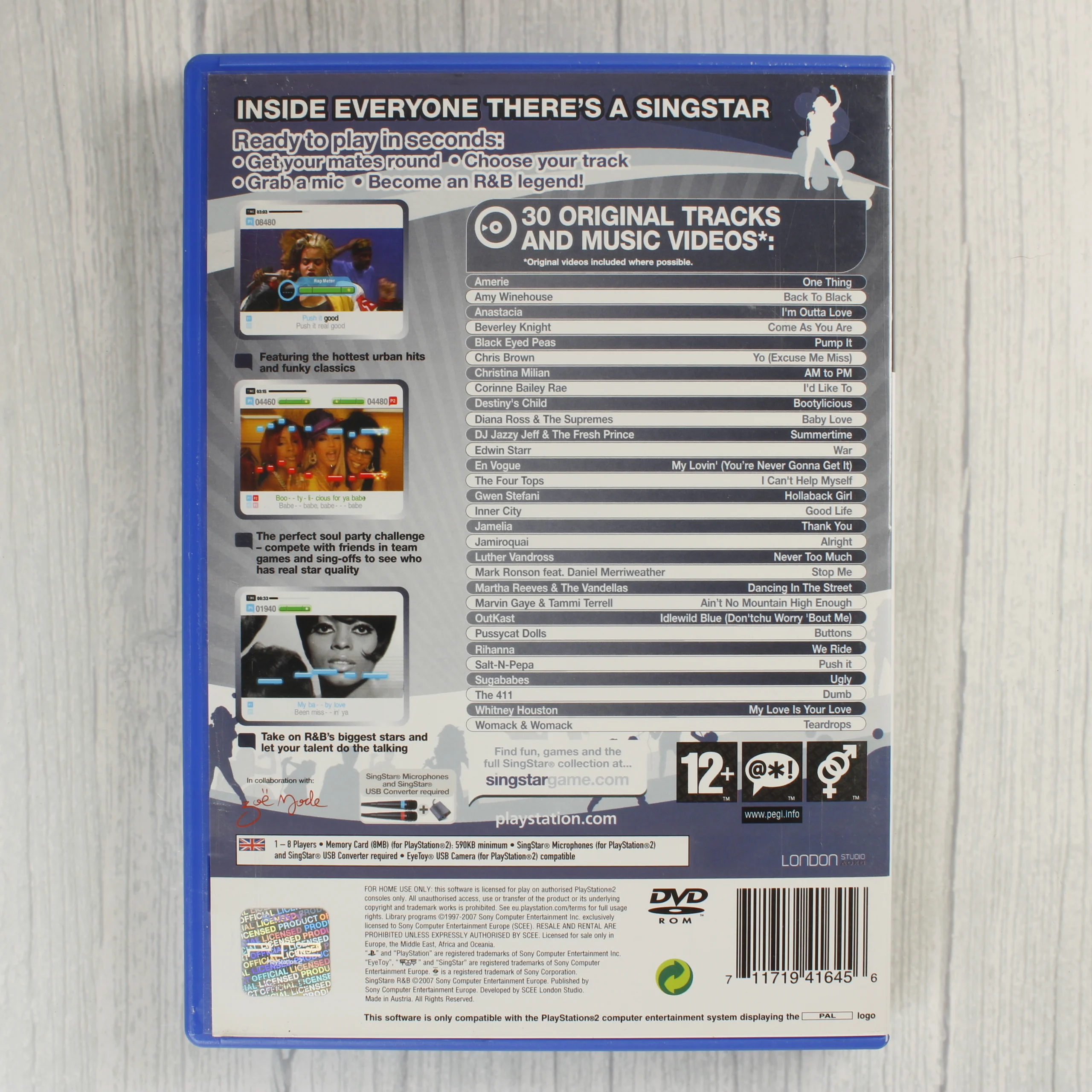 SingStar R&B zenei videójáték PlayStation 2-re. Eredeti tokkal, lemezzel és útmutatóval. 30 népszerű R&B slágerrel.