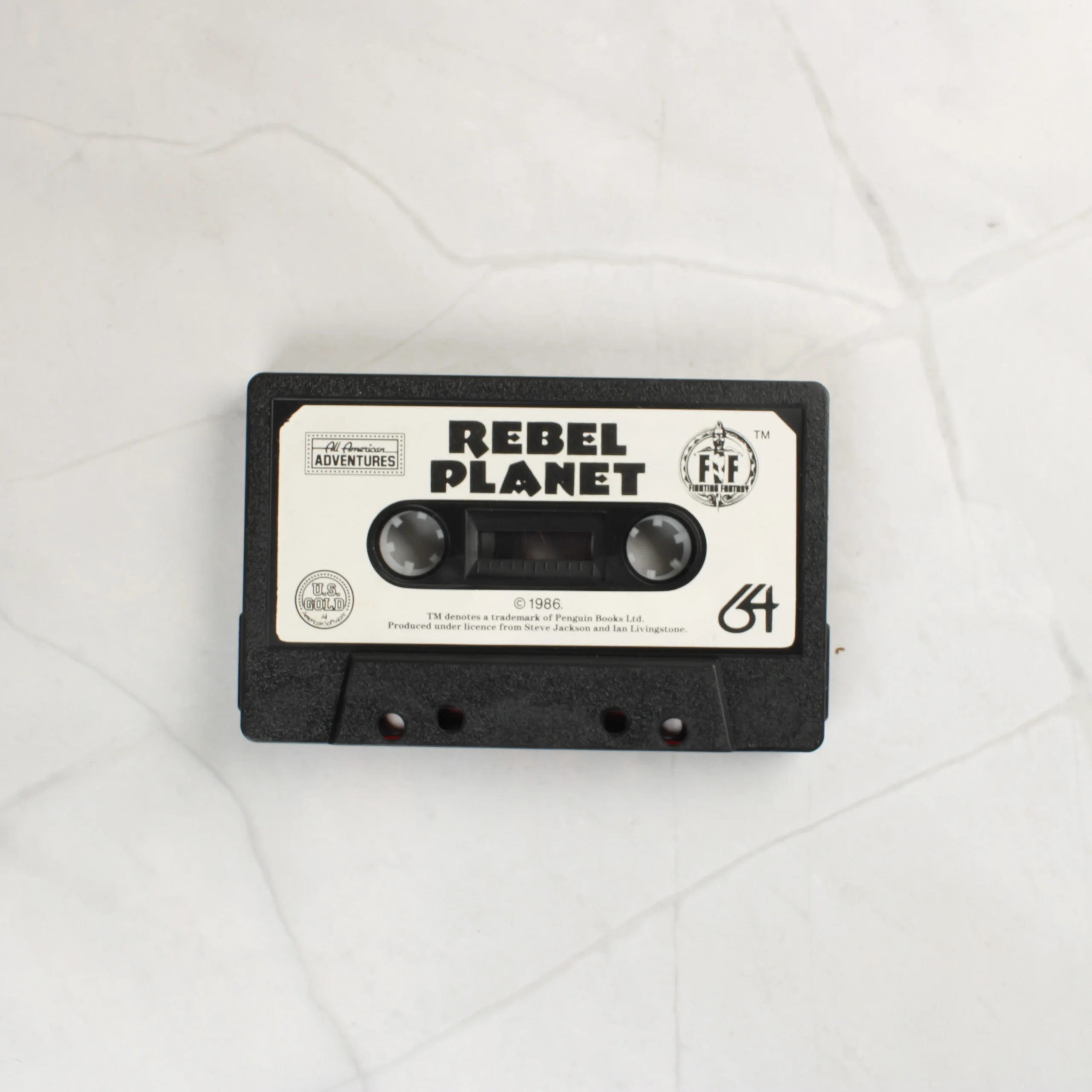 A Rebel Planet egy Commodore 64 platformra megjelent videójáték, amely kazetta formátumban, eredeti műanyag tokban található. A borítón egy sci-fi jelenet látható, amelyen egy lézerkarddal felfegyverzett harcos küzd egy futurisztikus környezetben. A tok hátoldalán sárga alapon játékmenet-képernyőképek, leírás és vonalkód szerepel. A fekete színű kazetta fehér címkével rendelkezik, amelyen a játék címe, a kiadó logói és az 1986-os évszám olvasható. A csomagolás és a hordozó fizikai állapota a korának megfelelő, a műanyag tokon használatból eredő apró karcok és kopások láthatóak. A termék a Fighting Fantasy sorozat része, az Adventure Soft és a U.S. Gold gondozásában jelent meg.