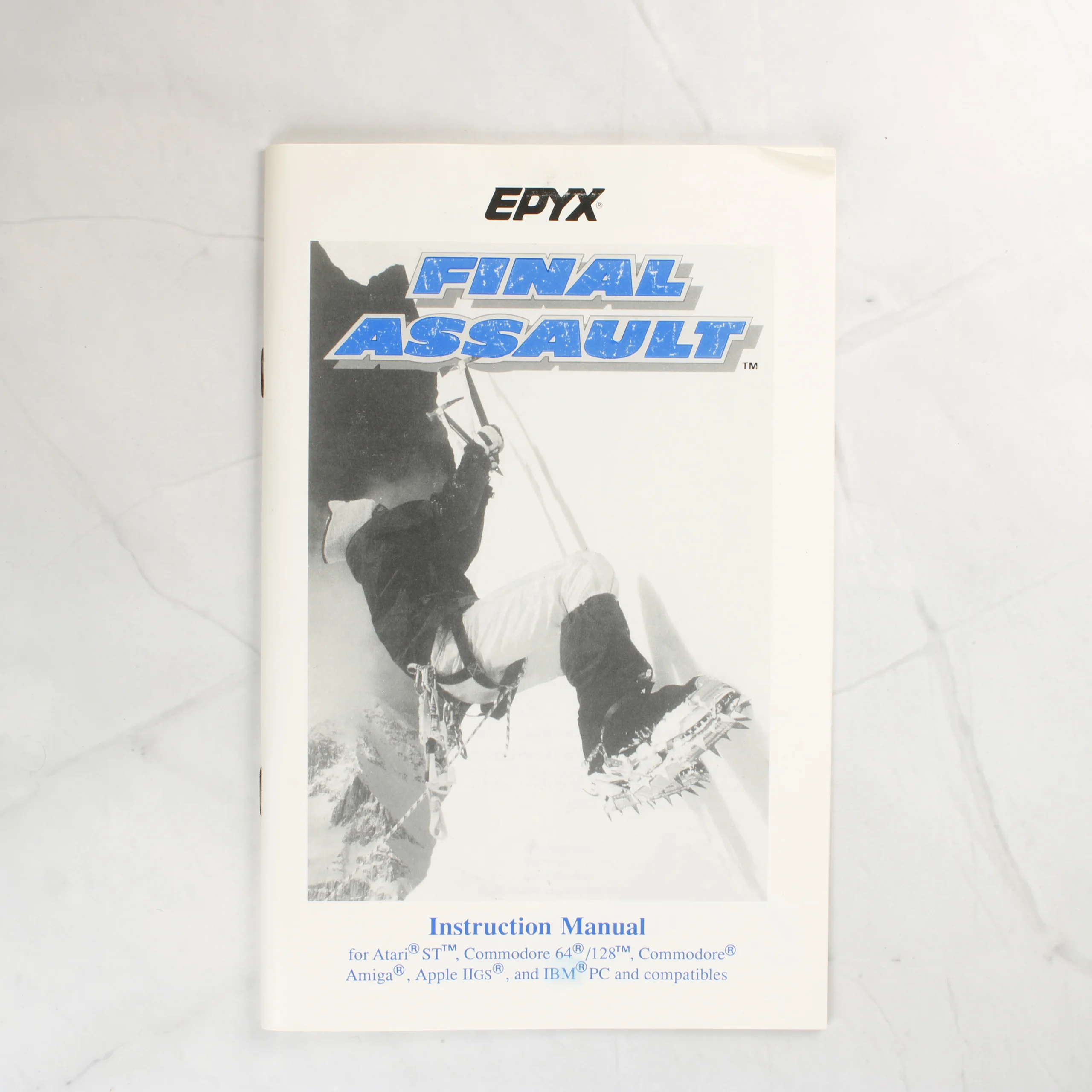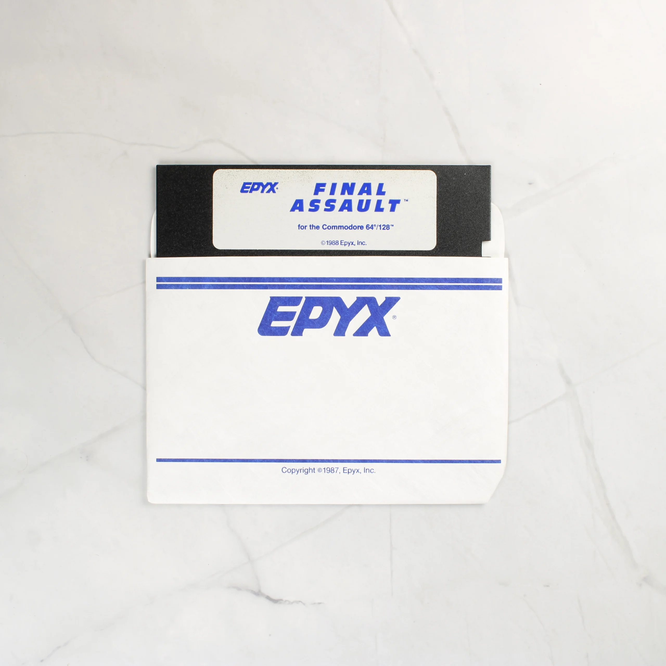 A Final Assault című videójáték Commodore 64/128 platformra készült kiadása. A csomag tartalmazza az eredeti kartondobozt, egy fekete-fehér borítójú használati útmutatót, valamint egy 5,25 colos floppy lemezt a hozzá tartozó papírtokban. A doboz elején egy hegymászó látható akció közben, havas hegyi környezetben. A hátoldalon angol nyelvű leírás és négy színes játékmenet-fotó található. A szoftvert az Epyx adta ki 1988-ban. A dobozon látható feliratok szerint a játék több más korabeli számítógéptípussal is kompatibilis volt, de ez a konkrét példány a Commodore gépekhez készült verziót tartalmazza.
