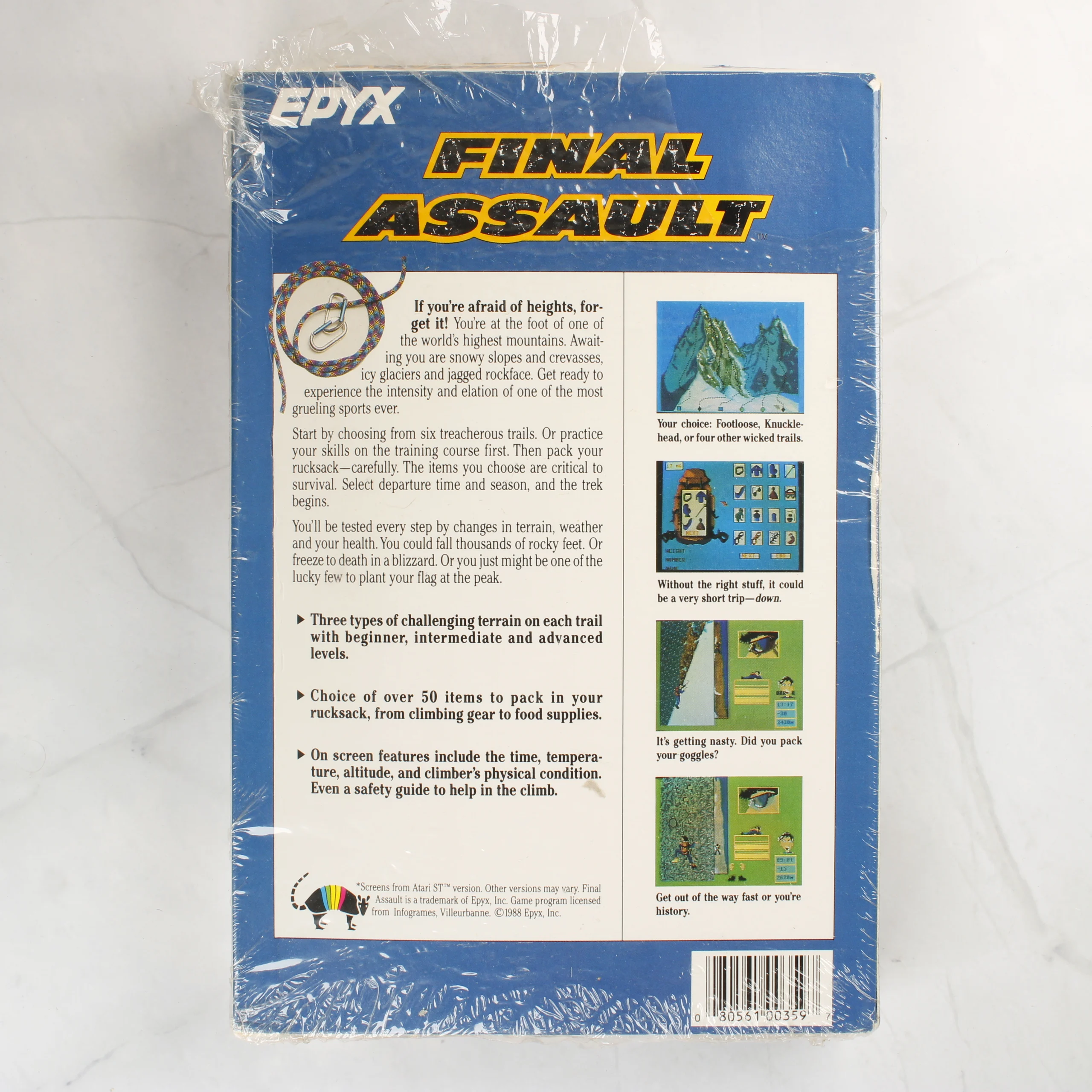 Final Assault, Epyx, Commodore 64, C64, videójáték, retro, floppy lemez, hegymászás