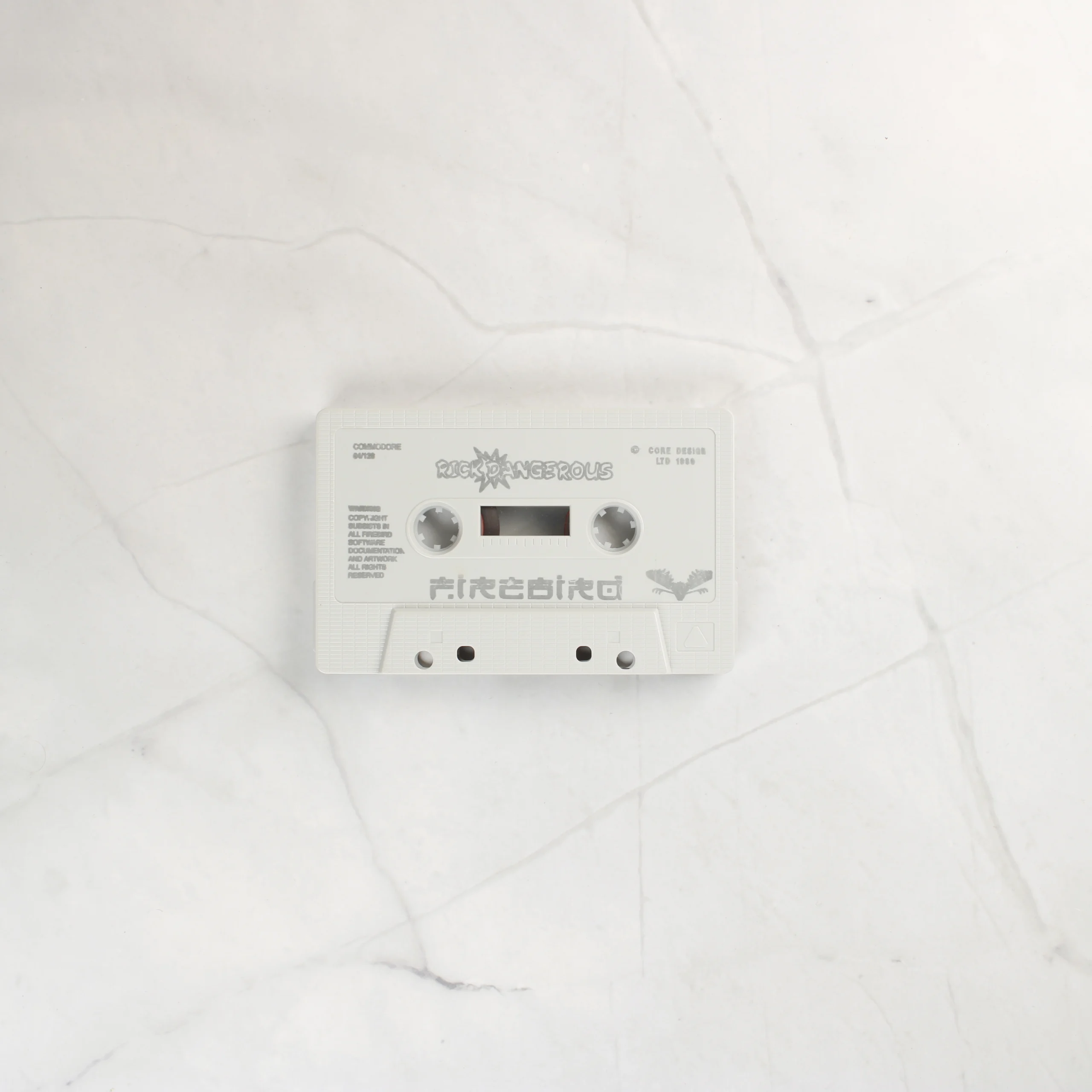 A Rick Dangerous című videójáték Commodore 64/128 platformra készült kiadása. A csomag tartalmazza az eredeti színes kartondobozt és egy fehér színű adathordozó kazettát. A doboz elején a főhős látható kalandor öltözetben, fegyverrel a kezében, háttérben dzsungellel és romokkal. A hátoldalon játékmenetből származó képernyőfotók és angol nyelvű leírás olvasható. A Firebird kiadó logója és a Core Design fejlesztő neve jól látható a csomagoláson. A kazetta világosszürke műanyag házas, rajta a játék címével és a kiadó feliratával.