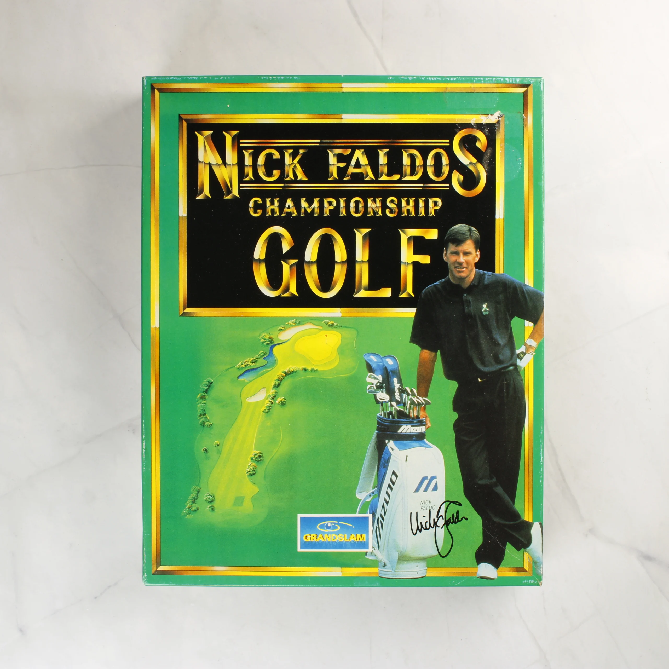 A Nick Faldo's Championship Golf egy 1992-es kiadású videójáték Amiga platformra. A csomag tartalmazza az eredeti, zöld alapszínű kartondobozt, amelyen Nick Faldo golfozó látható felszerelésével. A készlet része egy többnyelvű használati útmutató füzet, valamint két darab kék színű, 3,5 colos floppy lemez. A doboz hátoldalán angol nyelvű leírás és képernyőmentések láthatóak a játékról. A grafika 256 színű VGA látványvilágot és digitalizált hangeffekteket ígér a korabeli szimulációhoz.