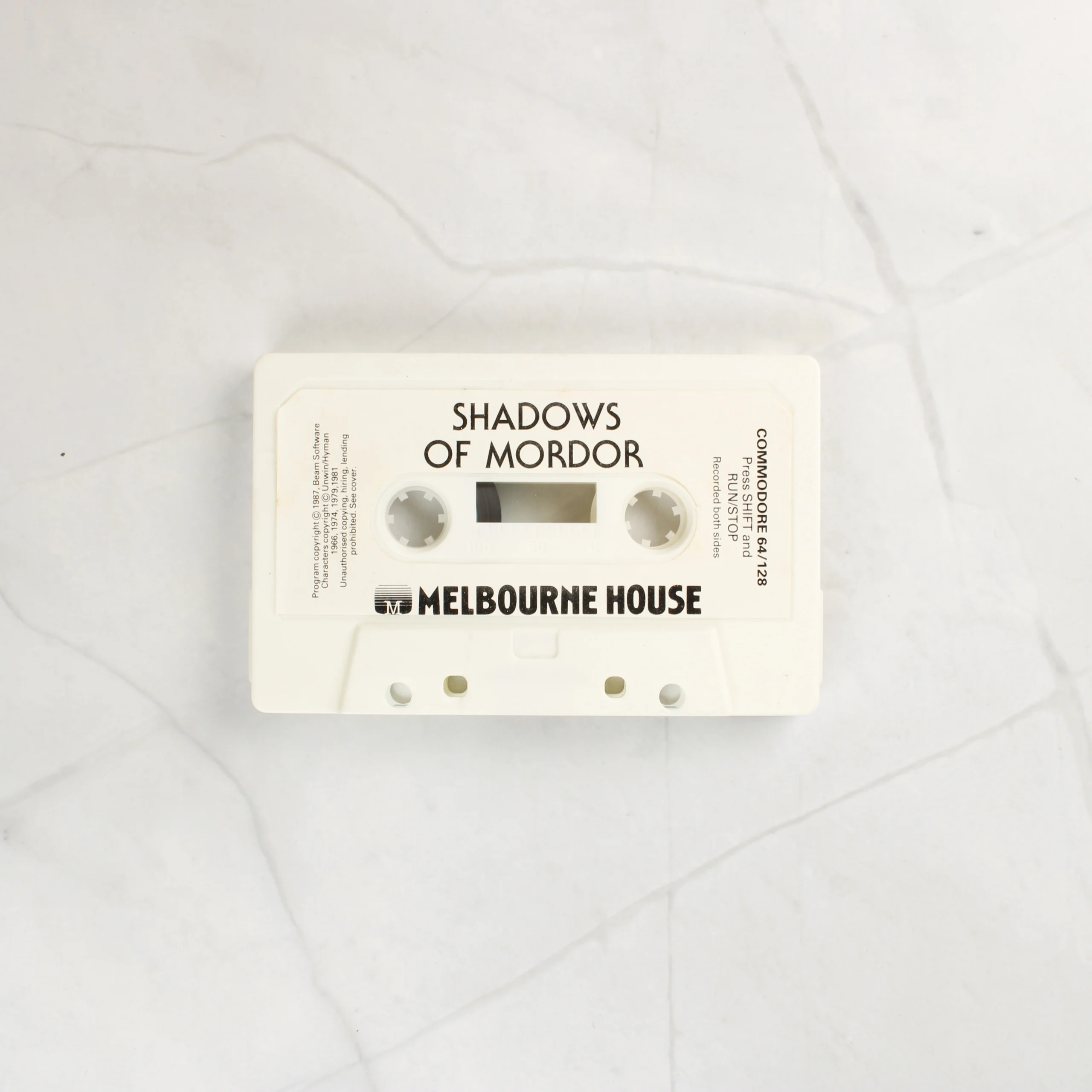 Shadows of Mordor videójáték Commodore 64/128 platformra. Eredeti Melbourne House kiadás kazettán, A Gyűrűk Ura alapján.