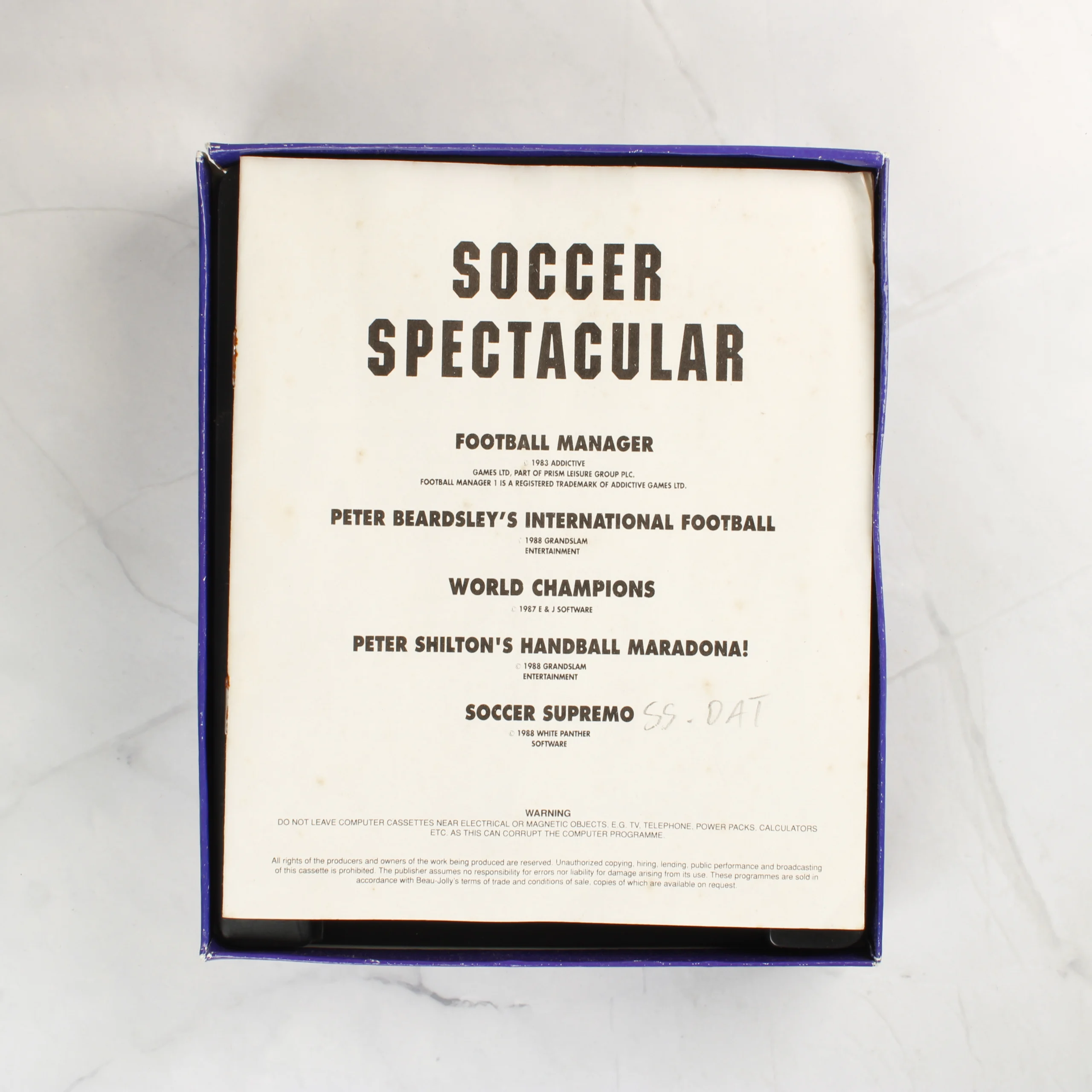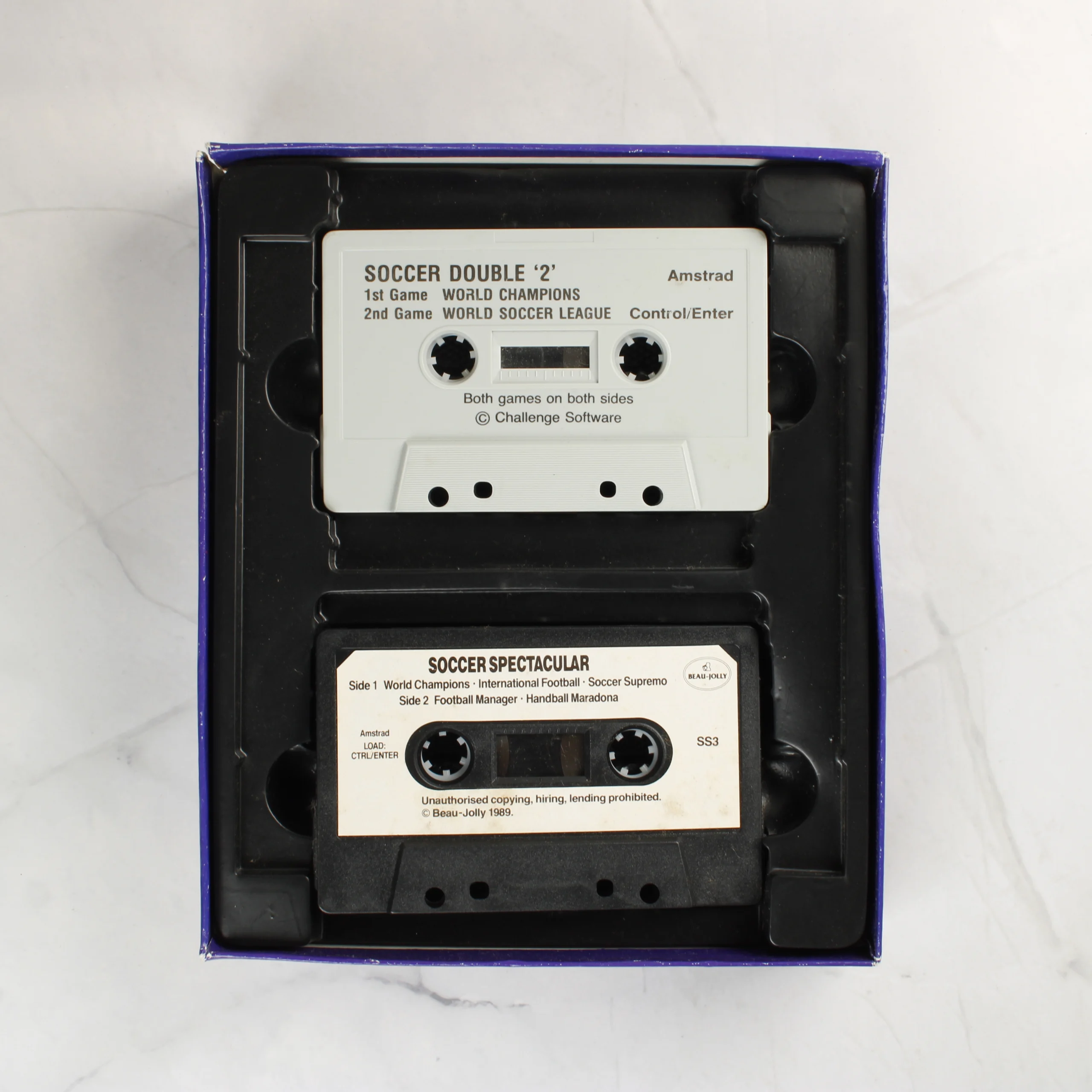 Soccer Spectacular videójáték-válogatás Amstrad 464/6128 számítógépekhez, két magnókazettával és használati útmutatóval, eredeti dobozban.