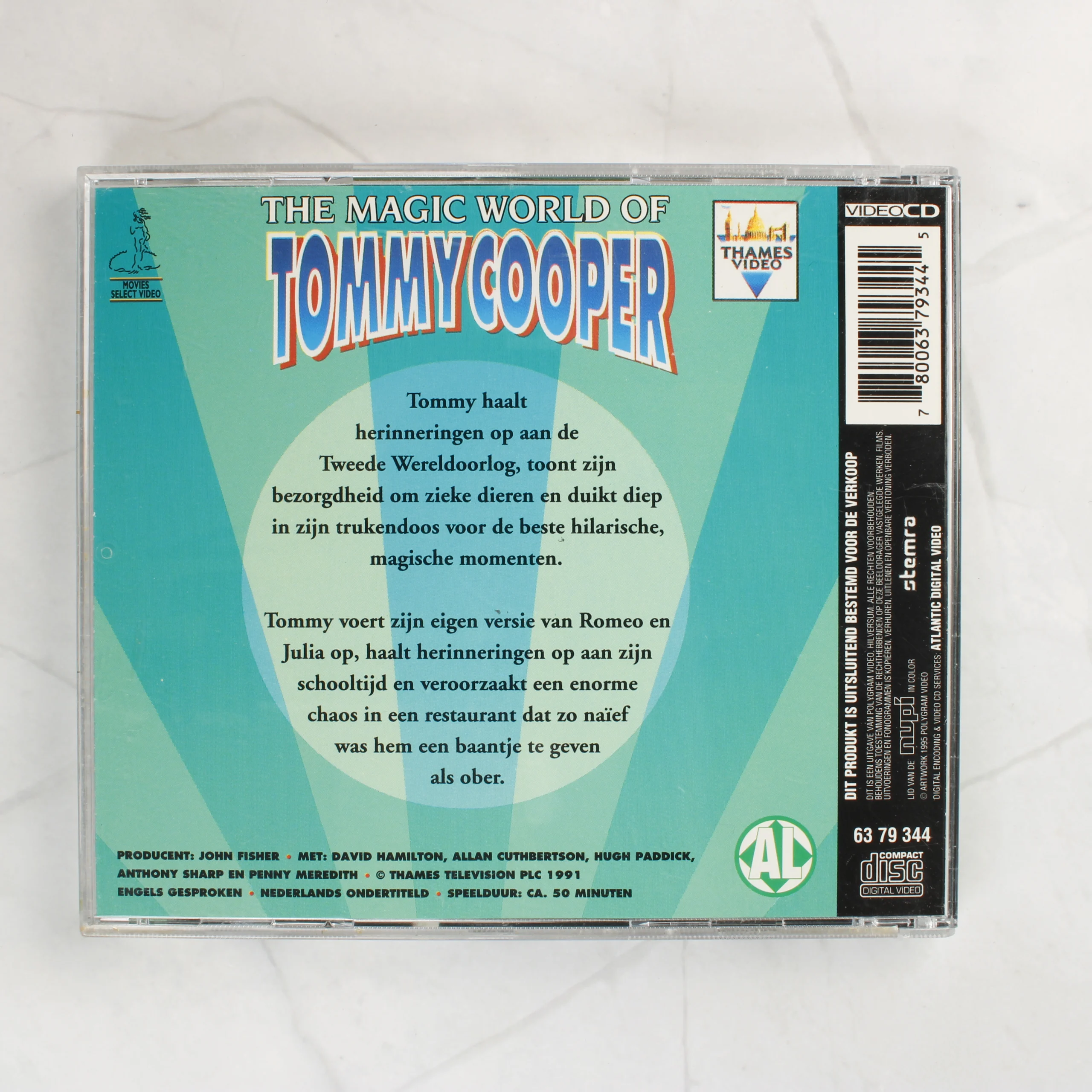 The Magic World of Tommy Cooper 2 Video CD kiadvány normál CD-tokban, holland nyelvű hátlapi leírással.