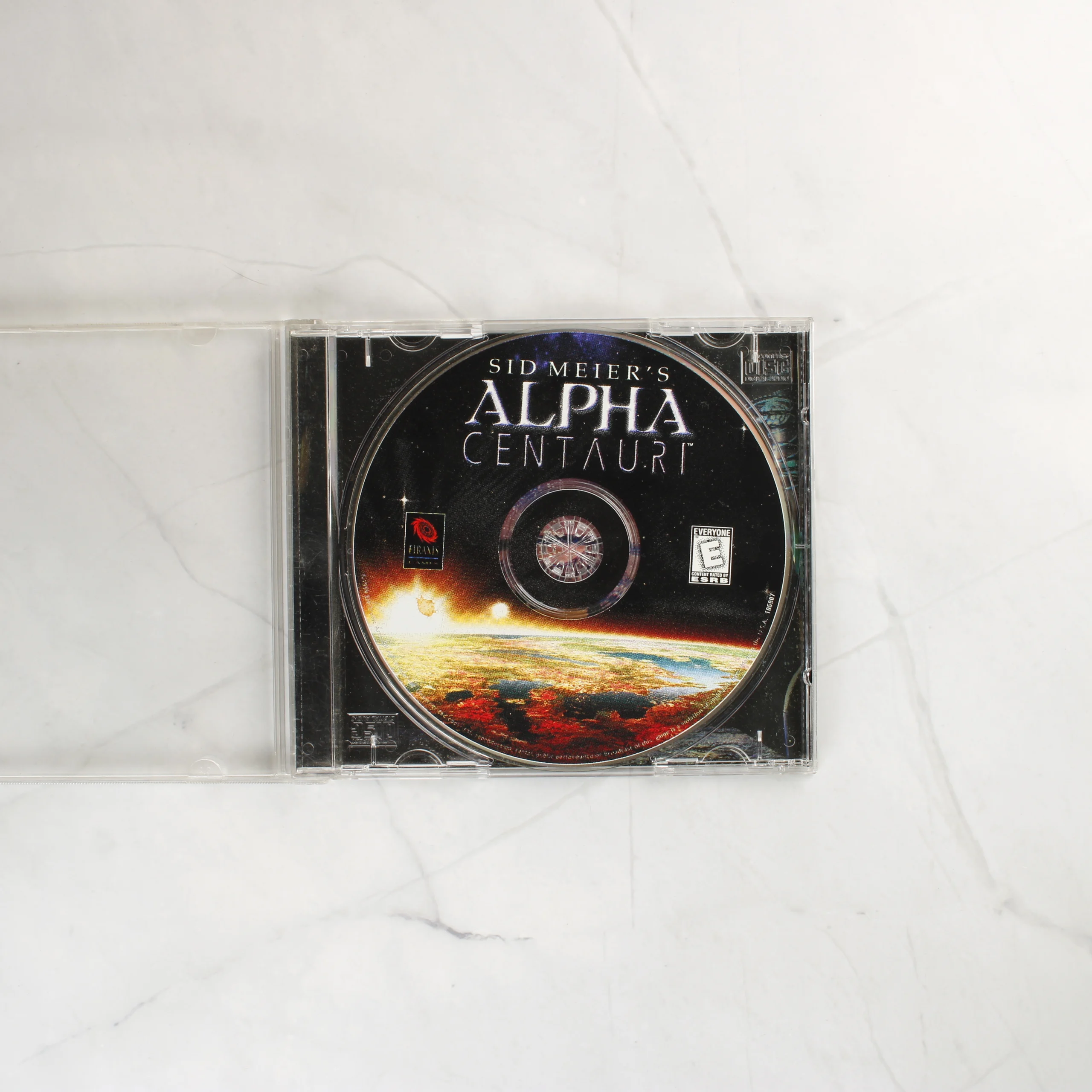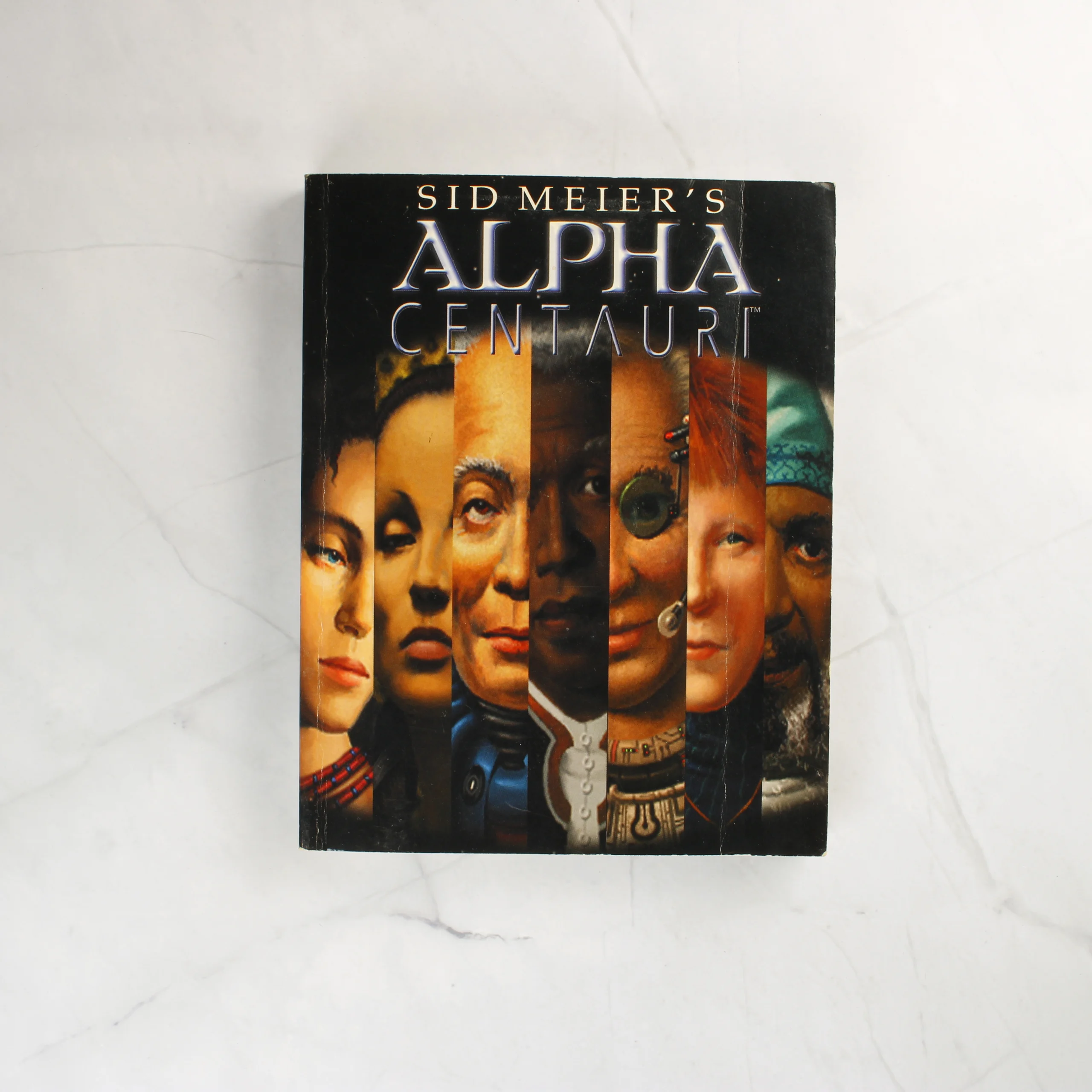 A Sid Meier's Alpha Centauri című PC-s stratégiai játék eredeti, nagydobozos kiadása. A csomag tartalmazza a színes illusztrációkkal ellátott kartondobozt, egy vastag felhasználói kézikönyvet, egy összehajtható technológiai fát ábrázoló posztert, valamint a játékot tartalmazó CD-lemezt normál CD-tokban. A doboz grafikája különböző karakterarcokat és egy idegen bolygó felszínét ábrázolja. A hátoldalon játékmenet-pillanatképek és angol nyelvű leírások láthatóak. A kiadvány az Electronic Arts és a Firaxis Games gondozásában jelent meg.