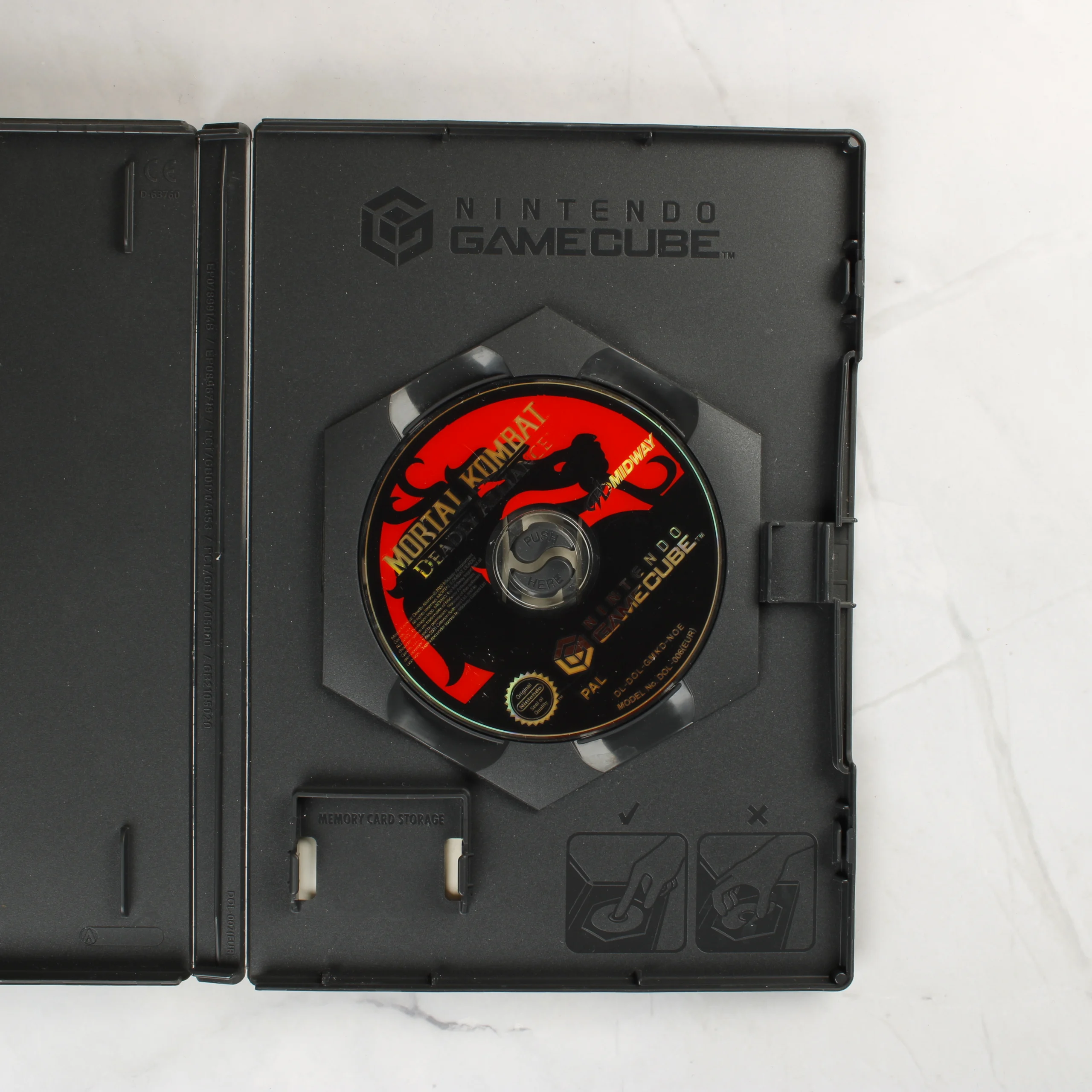 A Mortal Kombat Deadly Alliance videójáték Nintendo GameCube konzolra készült kiadása. A termék egy fekete műanyag tokban található, amely tartalmazza az eredeti optikai lemezt is. A borítón a sorozat jellegzetes sárkány logója látható ezüst és vörös színekben, fekete háttér előtt. A tok hátoldalán német nyelvű leírás, játékmenet-fotók és a karakterek képei szerepelnek. A csomagoláson látható a Nintendo GameCube logója, a Midway márkajelzés, valamint a PAL régiókód. A tok elején egy piros USK 18-as korhatár-besorolási matrica is helyet kapott. A belső részben a lemez rögzítve van, és látható egy kialakított hely a memóriakártya számára is.
