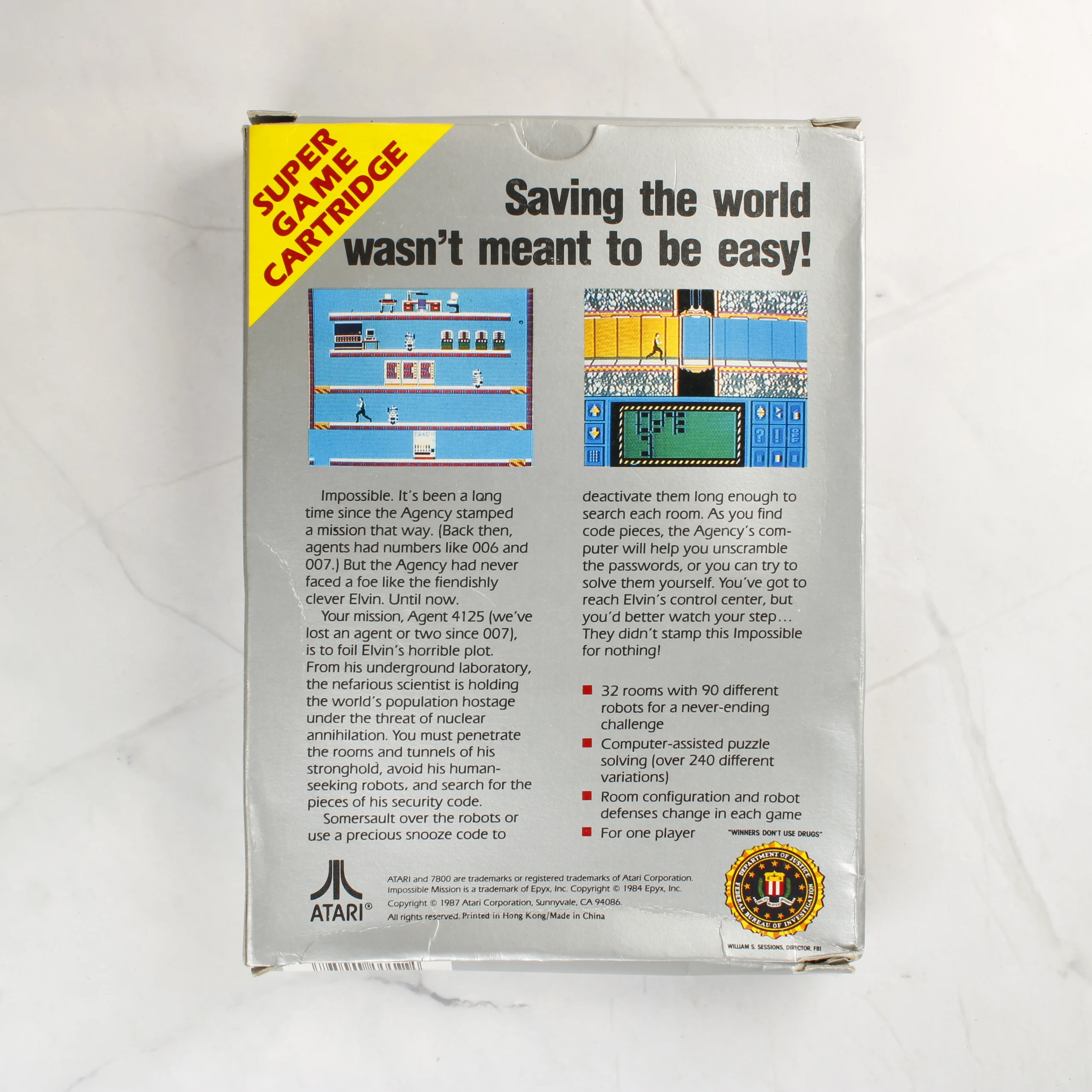 Atari 7800, Impossible Mission, videójáték, retro, cartridge, Epyx