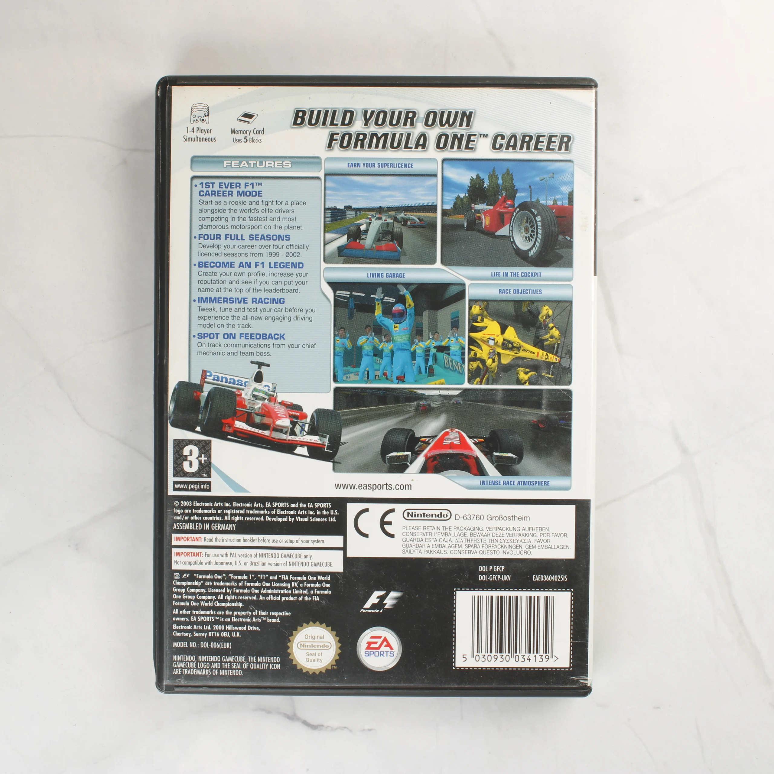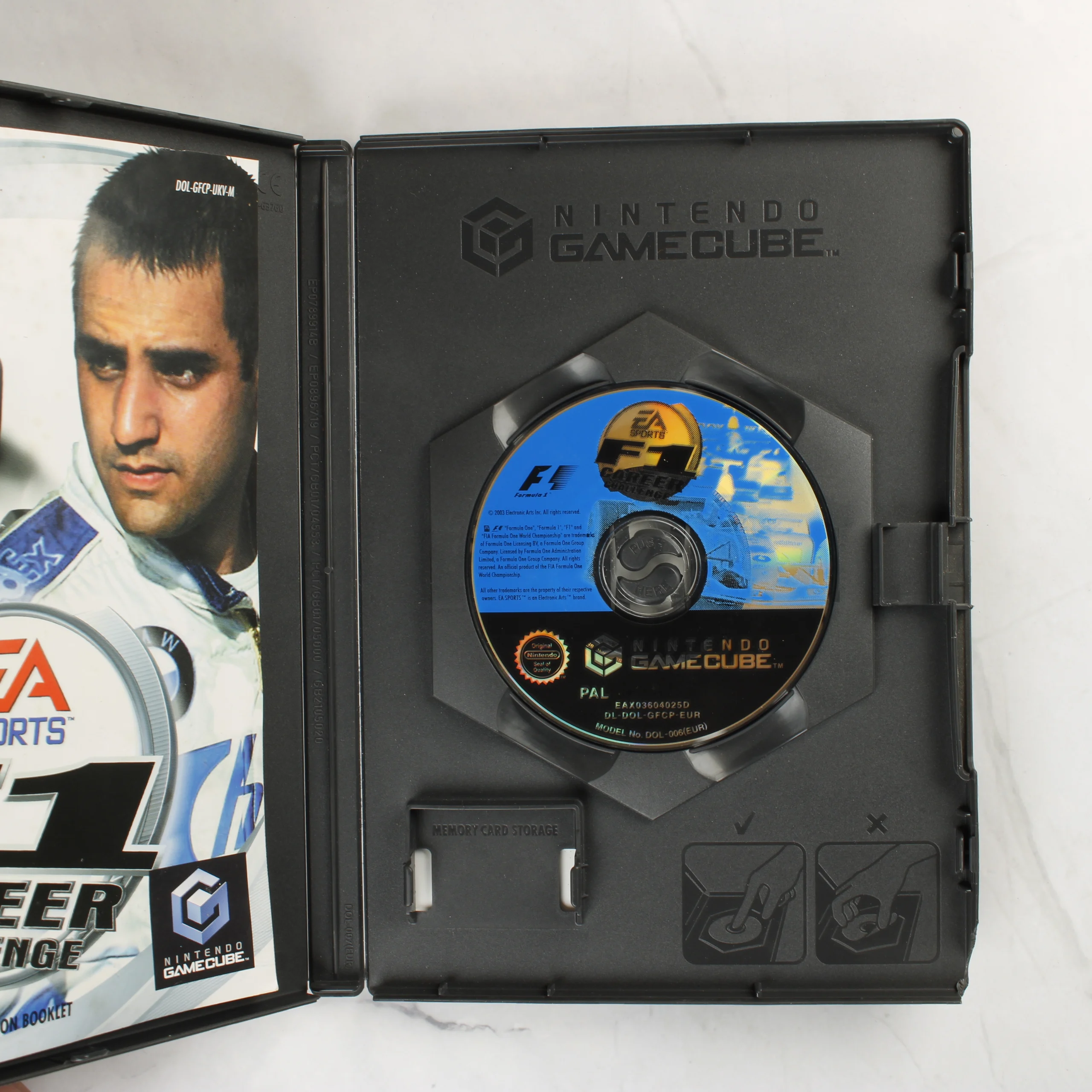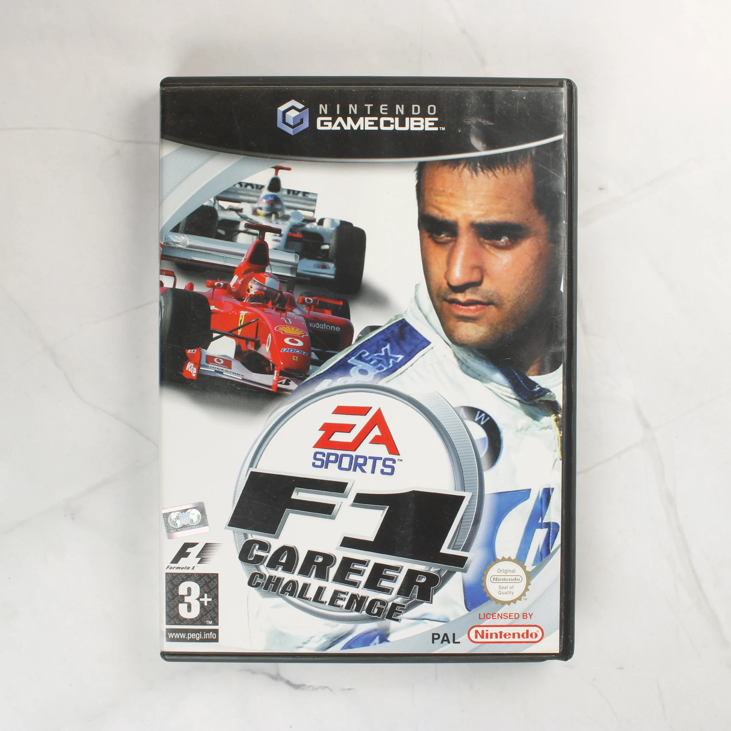 Az EA Sports F1 Career Challenge egy Nintendo GameCube konzolra megjelent videójáték. A csomag tartalmazza az eredeti fekete műanyag tokot, a színes borítót, a használati útmutatót és a játéklemezt. A borítón Juan Pablo Montoya látható, mellette Forma-1-es versenyautókkal. A tok hátoldalán angol nyelvű leírás és játékmenet-képek találhatók. A PEGI 3+ korhatár-besorolású szoftver PAL régiós kiadás. A belső részben kialakított hely van a memóriakártya számára is. A lemez felülete tiszta, a nyomtatott grafika ép. A papíralapú útmutató és a borító megkímélt állapotban van, jelentős szakadás vagy gyűrődés nem látható rajtuk.