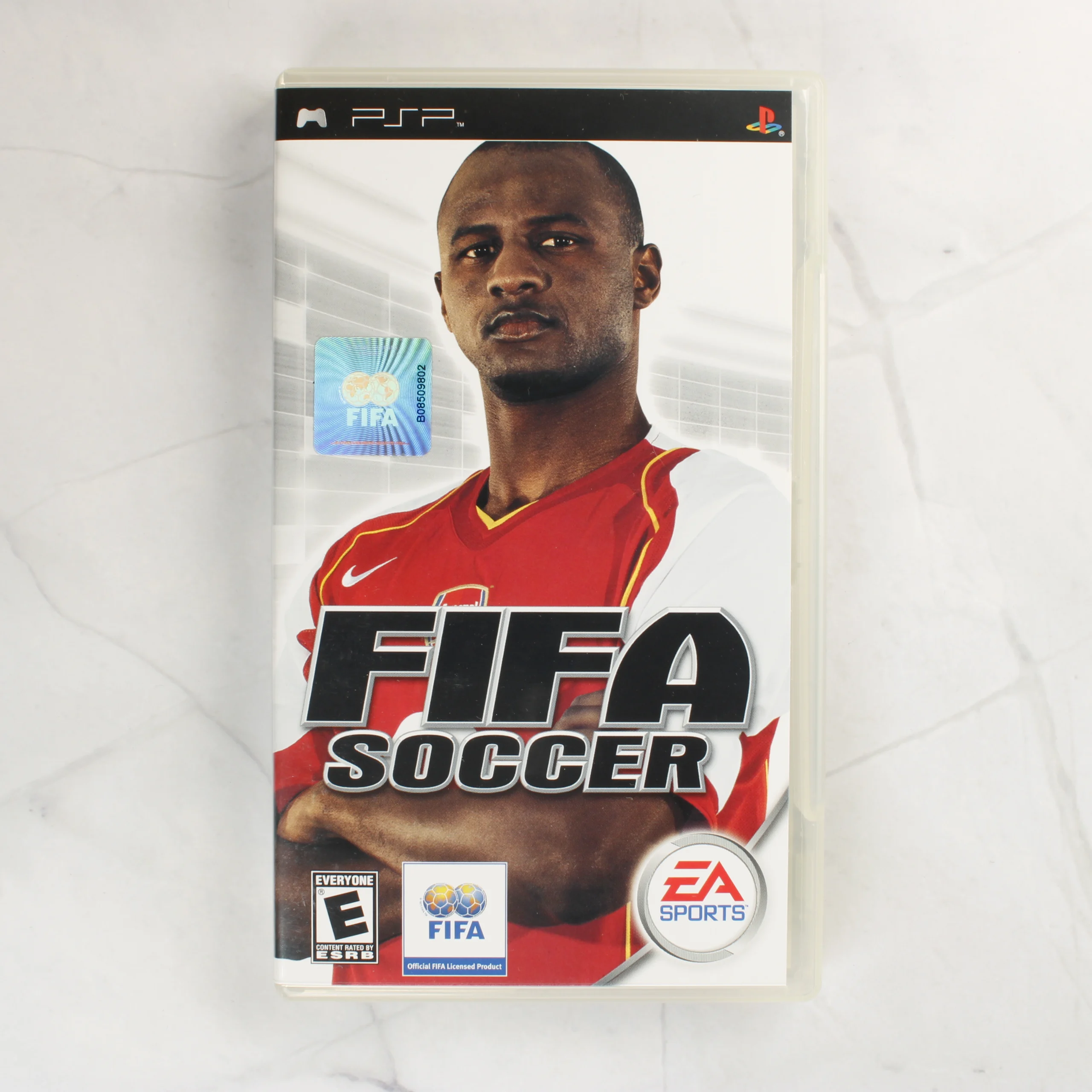 A FIFA Soccer videójáték PlayStation Portable (PSP) konzolra kiadott változata. A termék egy átlátszó műanyag tokban található, amely tartalmazza az eredeti borítót, a használati útmutatót és a játékot tároló UMD lemezt. A borítón Patrick Vieira labdarúgó látható az Arsenal mezében. A tok hátoldalán angol nyelvű leírás olvasható a játék funkcióiról, mint például a vezeték nélküli játékmenet és a 350 licencelt csapat. Az ESRB besorolása szerint a játék minden korosztály számára ajánlott (Everyone). A csomagolás és a lemez fizikai állapota megkímélt, a műanyag tok tiszta, repedésektől mentes. Az UMD lemez védőburkolata ép, a belső nyomtatott anyagok színei élénkek, nem látható rajtuk jelentős kopás vagy szakadás.