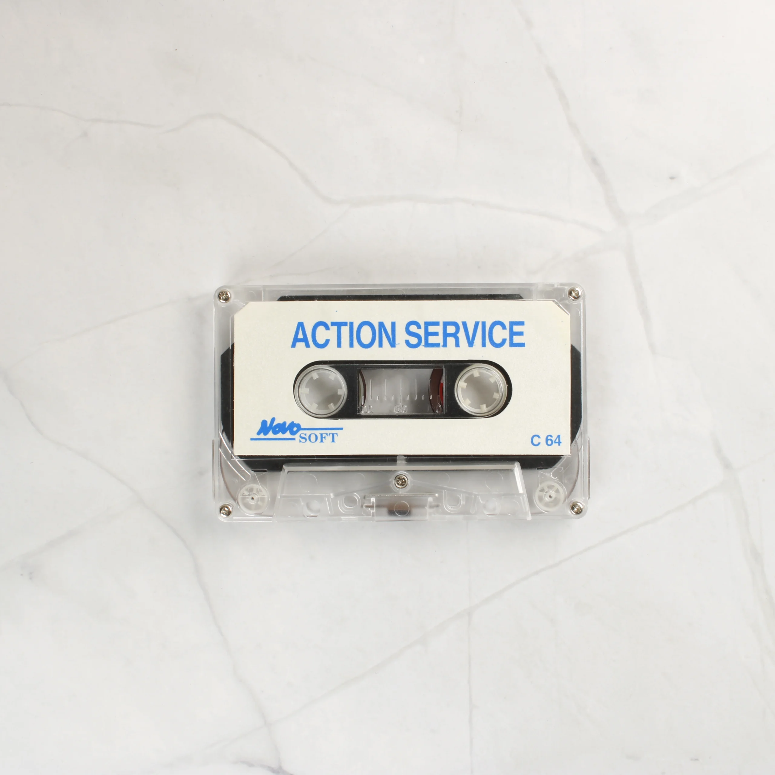 Action Service videójáték Commodore 64 platformra, eredeti műanyag tokban, Novosoft kiadású magnetofonkazettán, magyar nyelvű leírással.