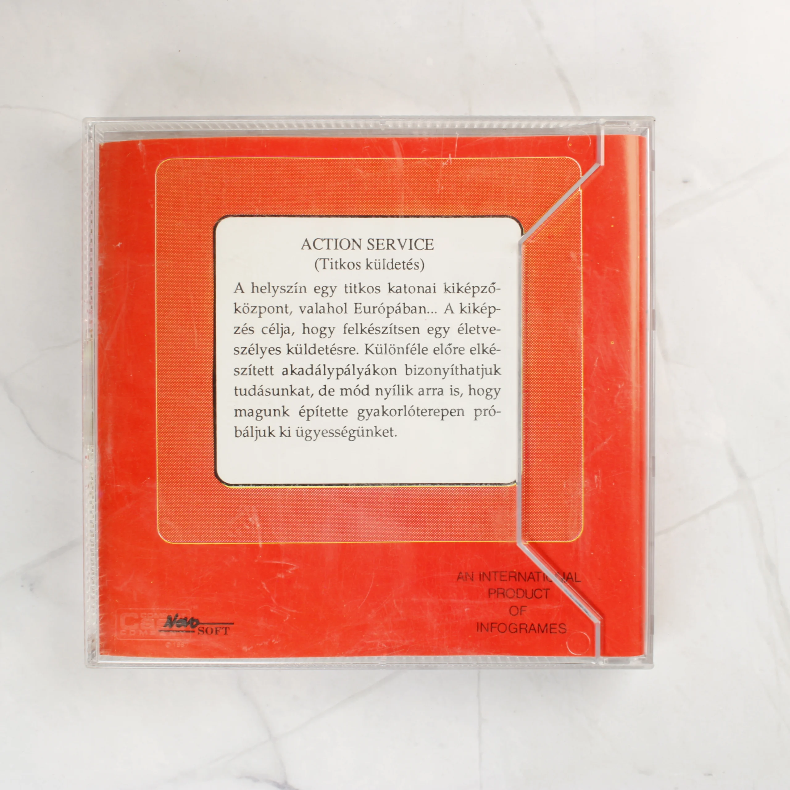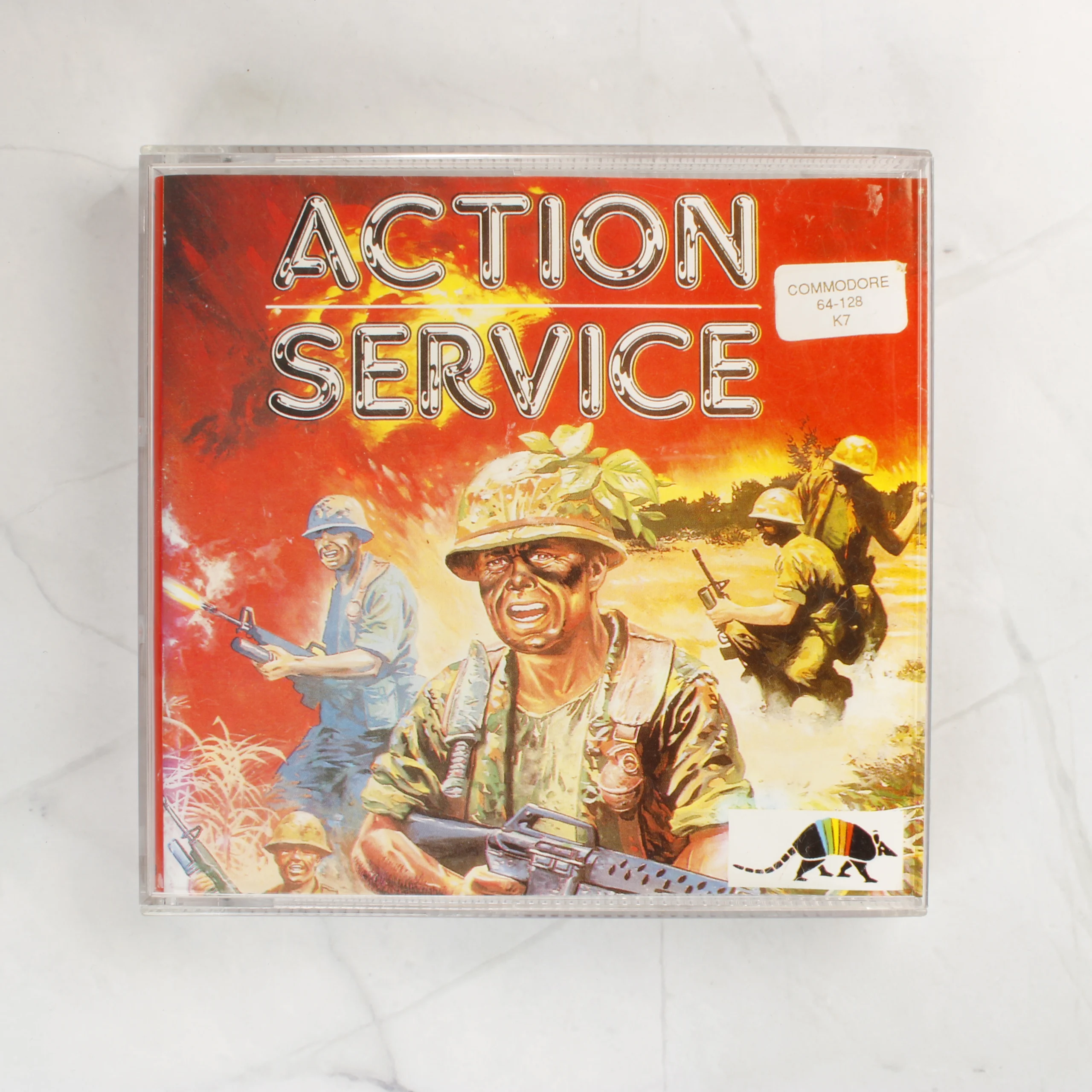 Az Action Service egy Commodore 64 platformra megjelent videójáték, amely egy átlátszó műanyag tokban található. A borítón katonai jelenet látható, előtérben egy álcázófestéket viselő katonával, a háttérben pedig harci cselekményekkel. A tok hátoldalán magyar nyelvű leírás olvasható a játék tartalmáról, amely egy titkos katonai kiképzőközpontban játszódik. A csomag tartalmaz egy átlátszó házas magnetofonkazettát is, amelyen kék felirattal szerepel a játék címe és a Novosoft logója. A borító jobb felső sarkában egy fehér matrica jelzi a kompatibilitást a Commodore 64 és 128 gépekkel. A kiadvány az Infogrames nemzetközi terméke, amelyet a Novosoft forgalmazott.