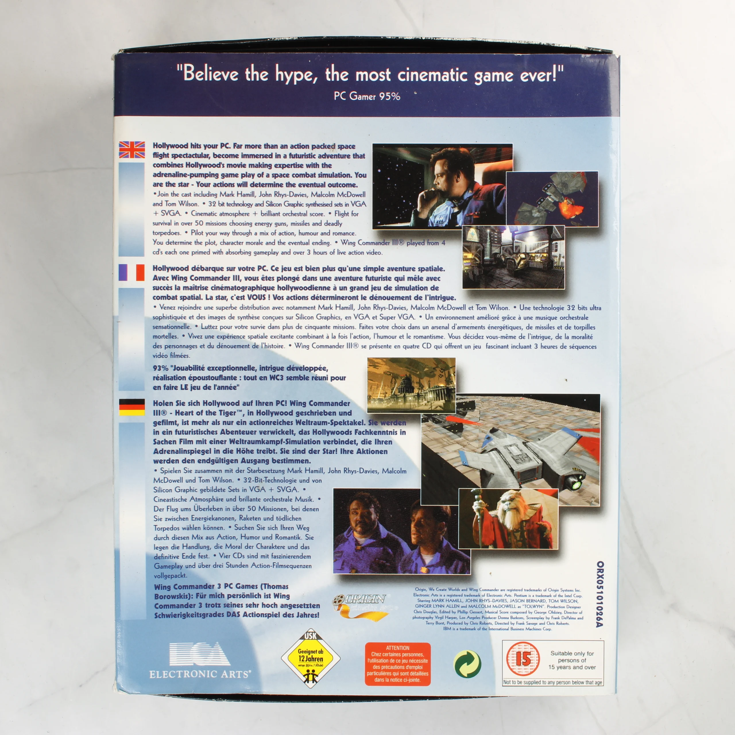 A Wing Commander III: Heart of the Tiger videójáték PC-s kiadása az Electronic Arts Classics sorozatában. A csomag egy nagyméretű, kék és fekete színekkel dominált kartondobozt tartalmaz, amelyben megtalálható a játék négy darab CD-ROM lemeze átlátszó műanyag tasakokban. A készlet része továbbá egy színes 'Playguide' használati útmutató és egy 'Victory Streak' elnevezésű kiegészítő füzet. A doboz elején a játék főszereplői és egy űrhajó látható, a hátoldalon pedig többnyelvű (angol, francia, német) leírás és játékmenet-fotók szerepelnek. A belső fekete kartonon az Electronic Arts logója látható ezüst színnel. A kiadványon 15-ös korhatár-besorolás és USK 12 jelzés is megfigyelhető.