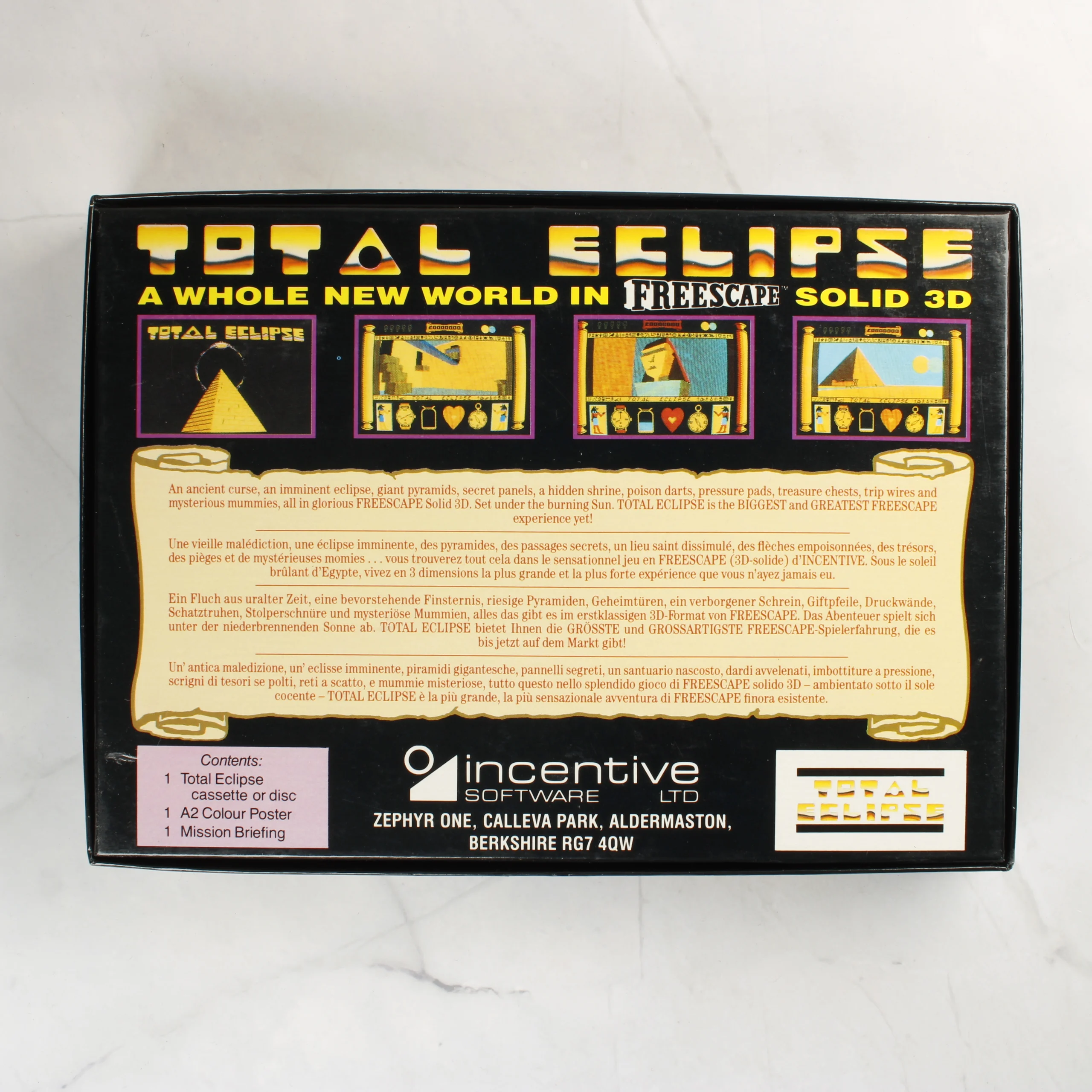 A Total Eclipse és Total Eclipse II videójátékokat tartalmazó Special Edition csomag Commodore 64 platformra. A fekete kartondoboz elején egy piramis és egy napfogyatkozás látható, rajta sárga kör alakú matricával, amely a különleges kiadást jelzi. A csomag tartalmaz egy 5,25 colos floppy lemezt fehér papírtokban, valamint egy színes A2-es posztert. A doboz hátoldalán többnyelvű leírás és képernyőmentések találhatók a játékról. A kiadvány az Incentive Software gondozásában jelent meg 1989-ben, Freescape Solid 3D technológiával.