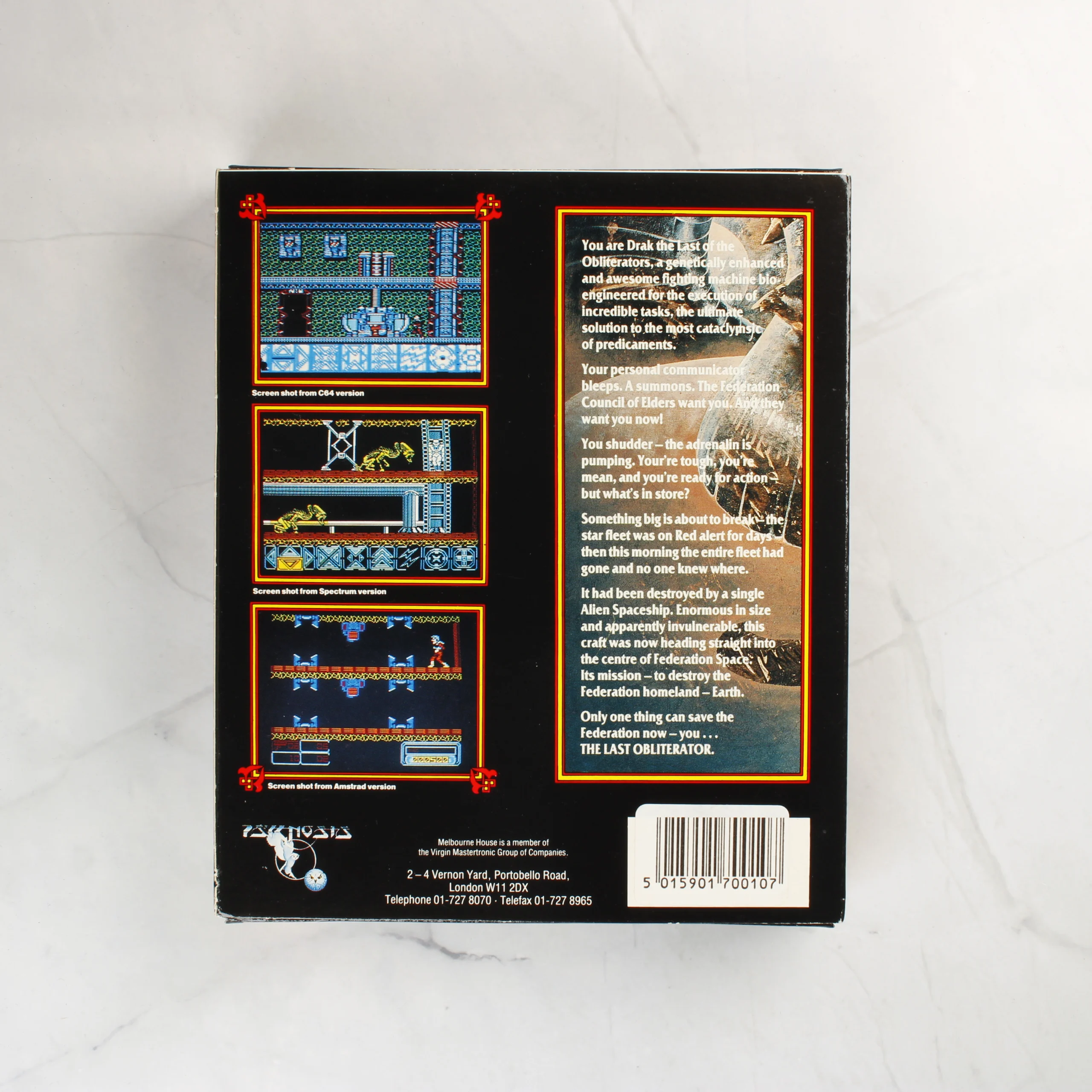 Obliterator, ZX Spectrum, Psygnosis, Melbourne House, videójáték, retro, kazetta, sci-fi