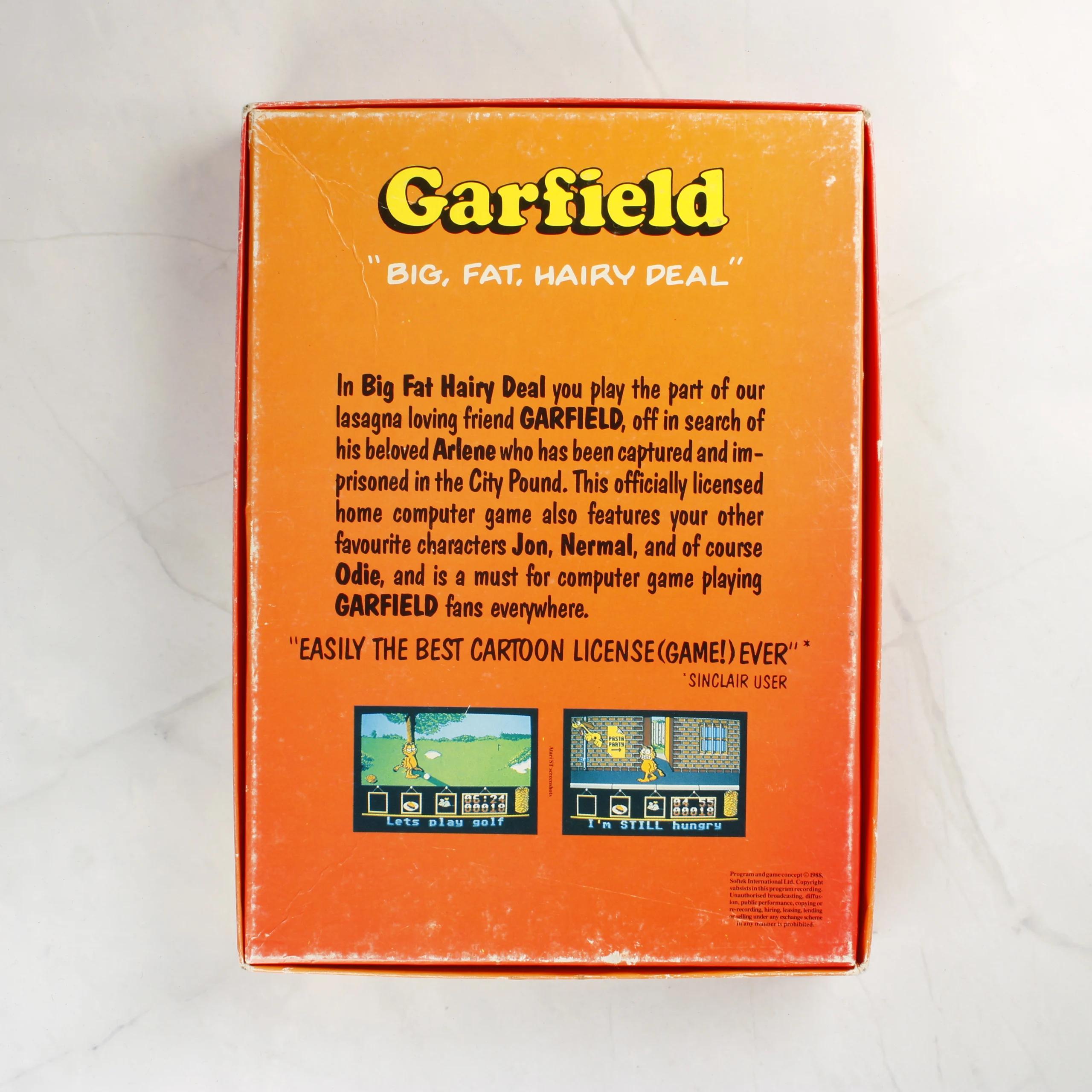 A Garfield: Big, Fat, Hairy Deal című videójáték Sinclair ZX Spectrum 48/128K platformra készült kiadása. A csomag egy narancssárga színű, kartonból készült dobozt tartalmaz, amelynek elején a címszereplő Garfield látható. A doboz hátoldalán a játék rövid leírása és két képernyőkép olvasható. A belső részben egy fekete műanyag tálca található, amelyben egy fehér színű, feliratozott magnókazetta helyezkedik el. A kazettán a játék címe, a kiadó logója és a technikai adatok szerepelnek. A csomagoláson látható a Spectrum 48/128K kompatibilitást jelző matrica is.
