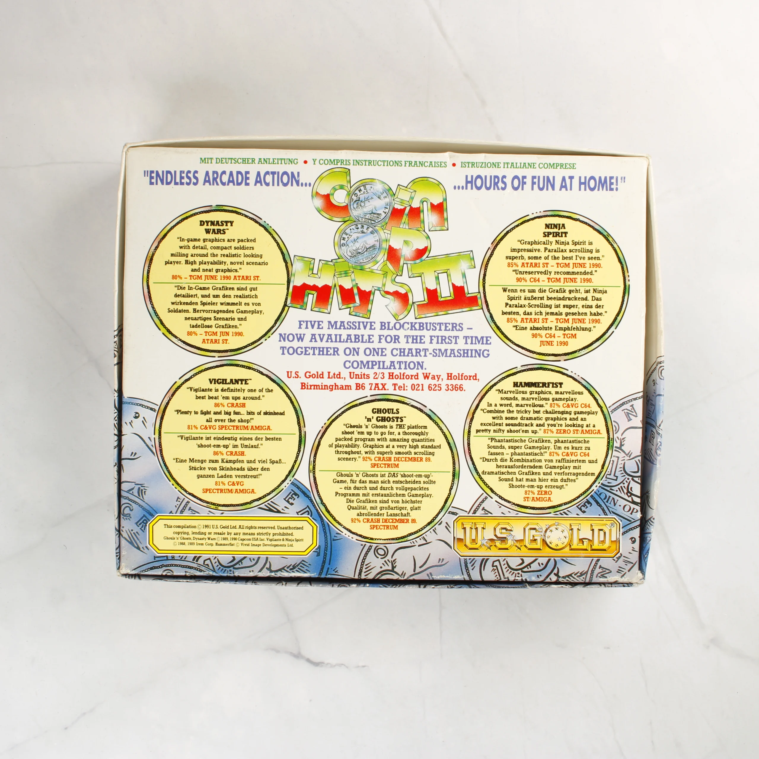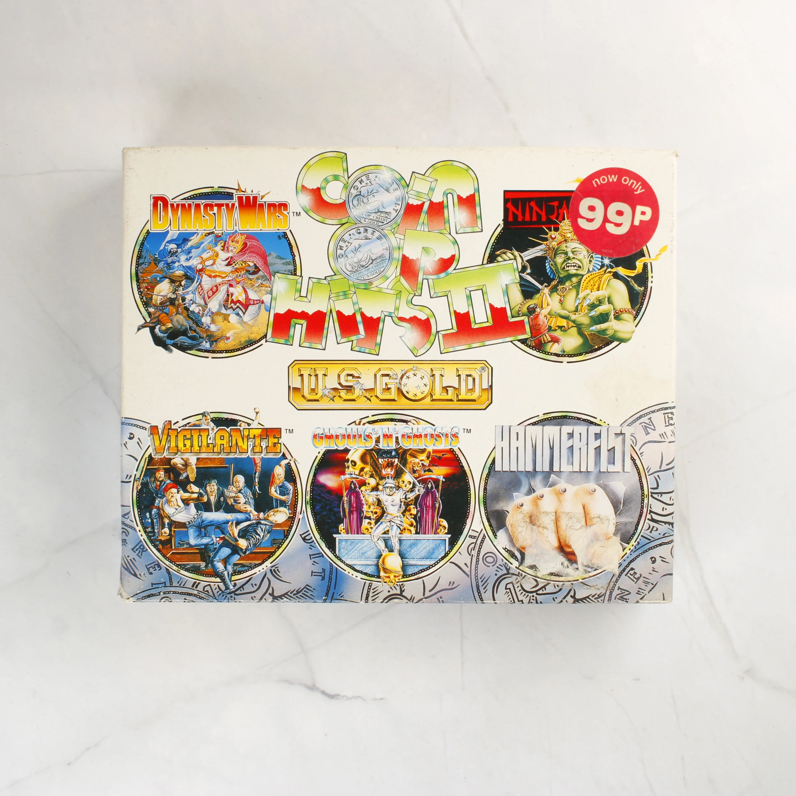 A Coin Op Hits II című videójáték-válogatás Commodore 64/128 platformra. A csomag tartalmazza az eredeti kartondobozt, egy többnyelvű használati útmutatót és három darab fekete színű mágnesszalagos kazettát. A válogatáson öt népszerű játék szerepel: Dynasty Wars, Ninja Spirit, Vigilante, Ghouls 'n' Ghosts és Hammerfist. A doboz elején színes illusztrációk láthatók a játékokból, valamint egy piros 99p feliratú árcímke. A kazettákon arany színű felirat jelzi a címeket és a CBM 64/128 kompatibilitást. A kiadvány az U.S. Gold gondozásában jelent meg 1991-ben.