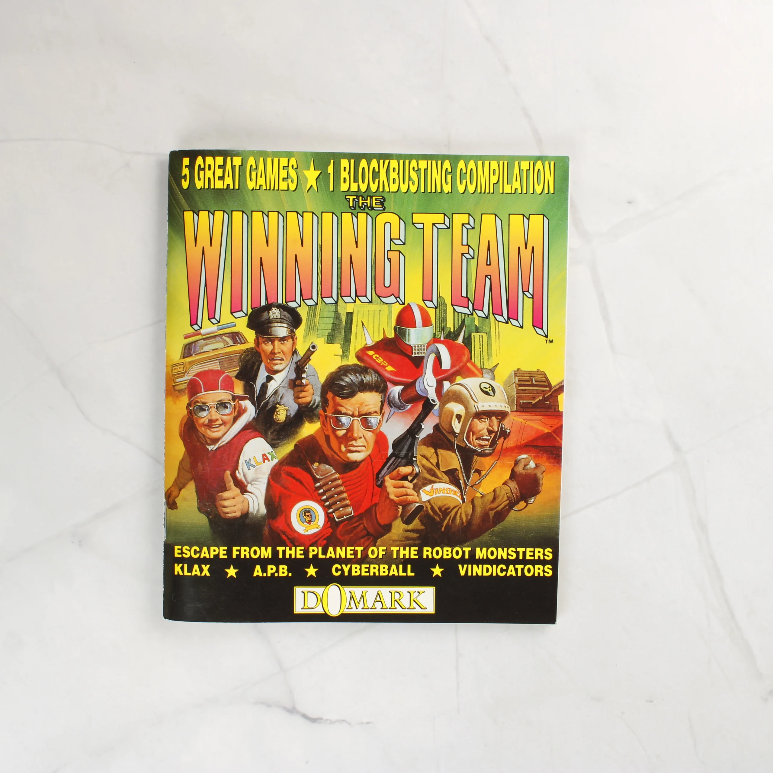 A The Winning Team egy videójáték-válogatás Amiga platformra, amelyet a Domark és a Tengen adott ki. A csomag öt klasszikus játékot tartalmaz: Klax, A.P.B., Escape from the Planet of the Robot Monsters, Cyberball és Vindicators. A készlet egy színes illusztrációval ellátott kartondobozból, egy többnyelvű használati útmutatóból és öt darab kék színű, 3,5 colos floppy lemezből áll. A doboz elején a játékok karaktereit ábrázoló grafika látható, a hátoldalon pedig képernyőképek és rövid leírások szerepelnek angol, német, francia és olasz nyelven. A lemezeken fehér felirat jelzi az egyes játékok címeit és a kiadói információkat. A csomagoláson látható az Amiga logó és a kiadók emblémái.