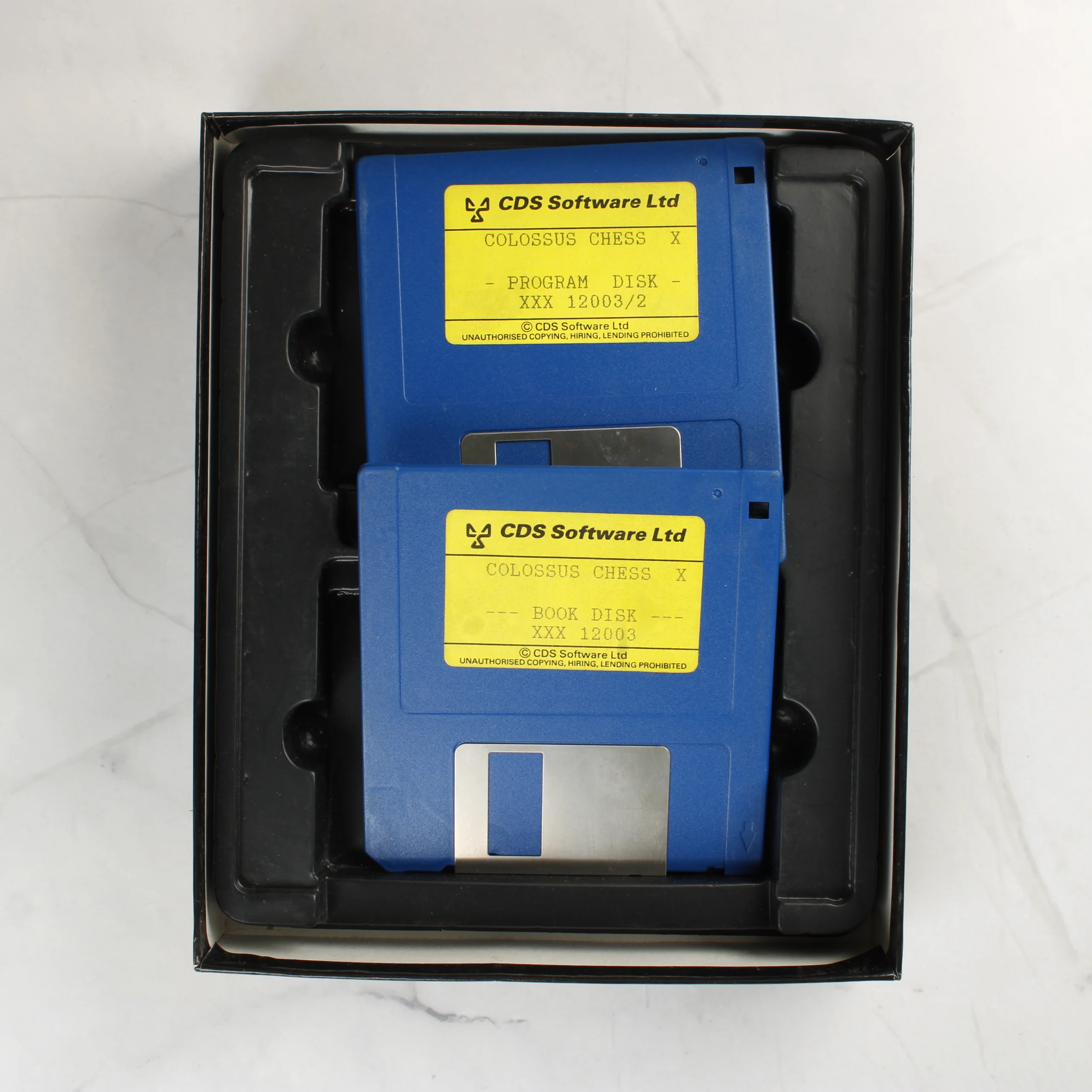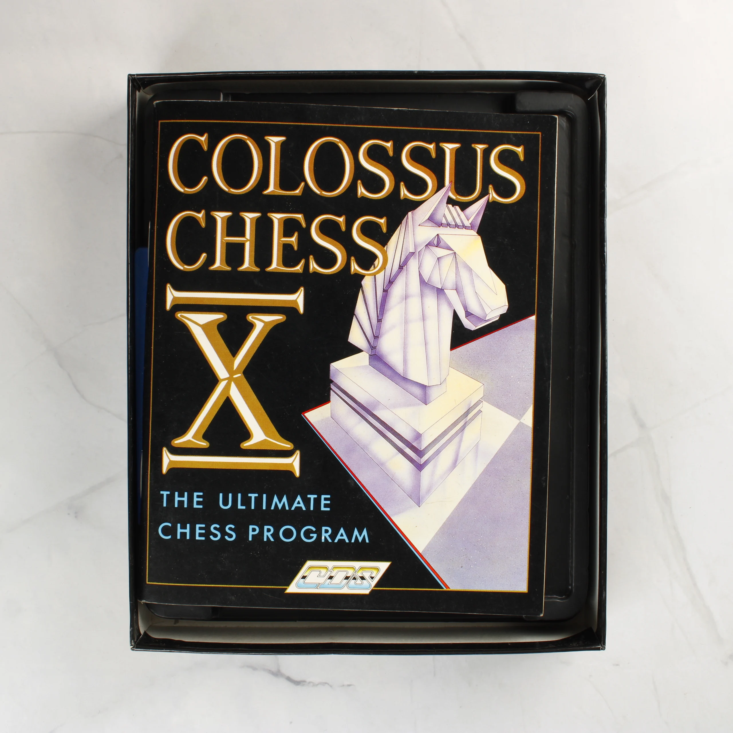 A Colossus Chess X egy klasszikus sakkprogram Atari ST számítógépre, amelyet a CDS Software Ltd adott ki. A csomag egy fekete alapszínű, kartonból készült dobozt tartalmaz, amelynek elején egy stilizált, fehér színű, geometrikus ló sakkfigura látható. A dobozban két darab 3,5 colos kék színű floppy lemez található, sárga címkékkel ellátva, amelyek a programot és a könyvtárat tartalmazzák. A készlethez tartozik egy fekete borítós használati útmutató is, amely a doboz grafikáját ismétli meg. A doboz hátoldalán többnyelvű leírás és képernyőmentések láthatóak a játékról. A csomagoláson egy régi árcímke és egy piros Atari ST kompatibilitási jelzés is megfigyelhető.