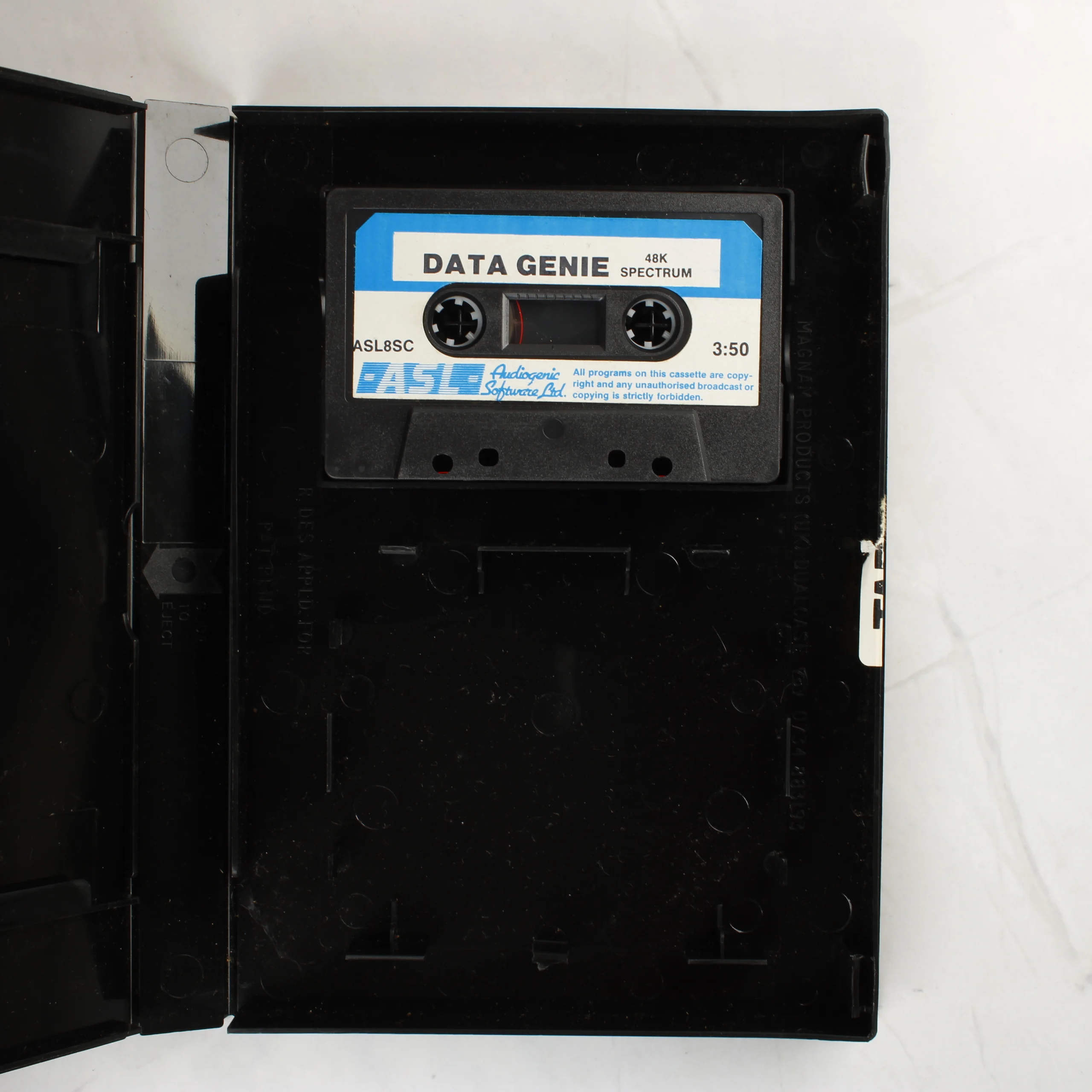 Data Genie adatbázis-kezelő szoftver Sinclair 48K Spectrum számítógéphez. Eredeti kazetta, használati útmutató és műanyag tok az Audiogenic Software-től.