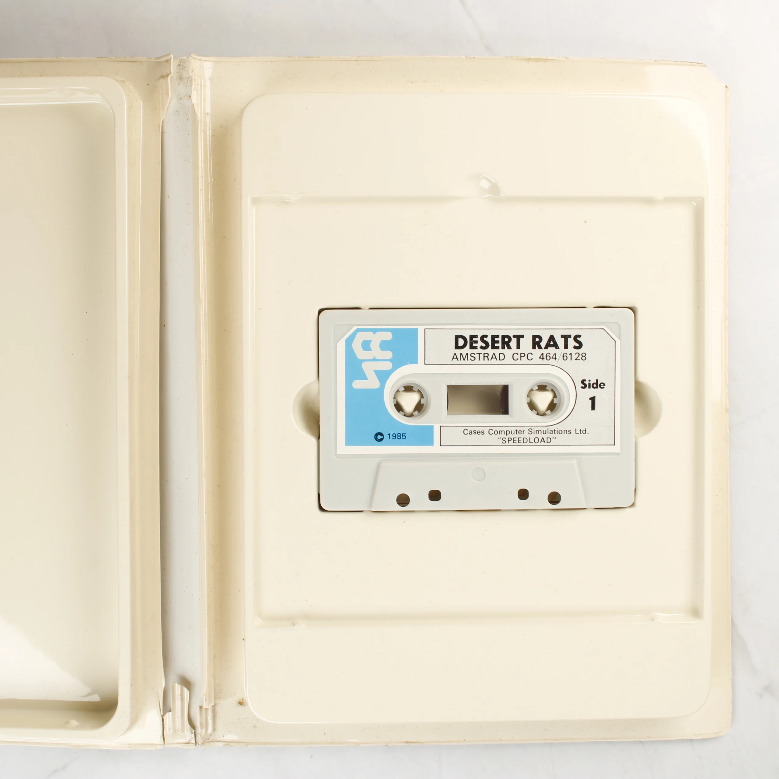 A Desert Rats: The North Africa Campaign című videójáték Amstrad CPC 464/6128 platformra. A csomag tartalmazza az eredeti, nagyméretű műanyag tokot, amelynek elején egy tüzérségi egységet ábrázoló színes illusztráció látható. A tok belsejében egy szürke színű magnókazetta található, kék és fehér feliratos címkével, valamint egy sárga borítójú, fekete-fehér illusztrációval ellátott használati útmutató füzet. A kiadványt a Cases Computer Simulations Ltd. jelentette meg 1985-ben. A borítón R. T. Smith neve szerepel szerzőként. A tok hátoldalán a játék leírása, egy illusztráció és a vonalkód látható.