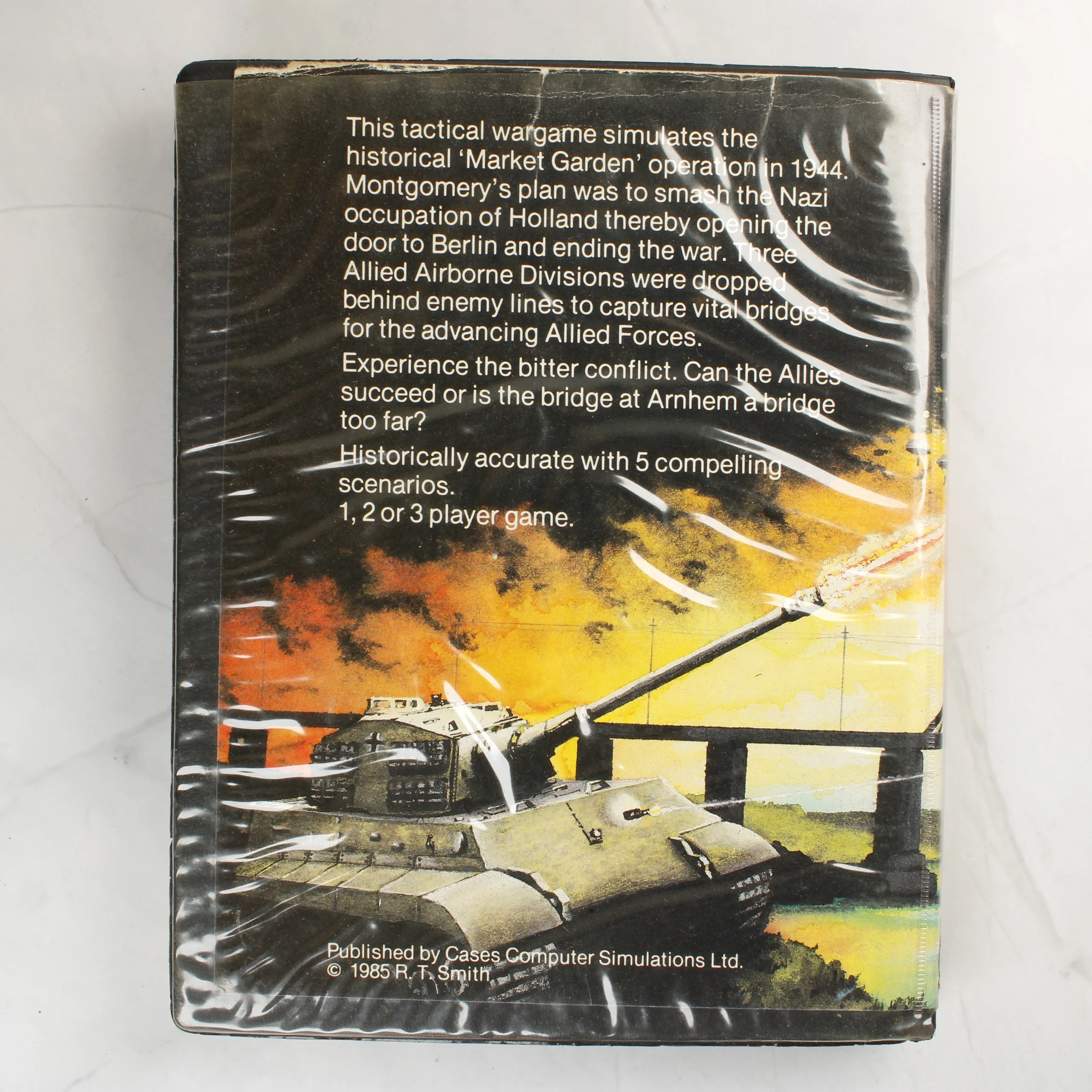 Az Arnhem: The 'Market Garden' Operation egy taktikai háborús stratégiai játék Amstrad CPC 464/664 számítógépre. A csomag tartalmazza az eredeti fekete műanyag tokot, a színes borítót, a használati útmutatót és egy darab mágnesszalagos kazettát. A borítón egy híd felett elhaladó repülőgép és ejtőernyősök láthatók harci környezetben. A hátoldalon a játék leírása és egy tank illusztrációja szerepel. A kazetta fehér színű, kék és fekete feliratokkal, rajta a Cases Computer Simulations Ltd. logójával. A kiadvány 1985-ös dátumozású.