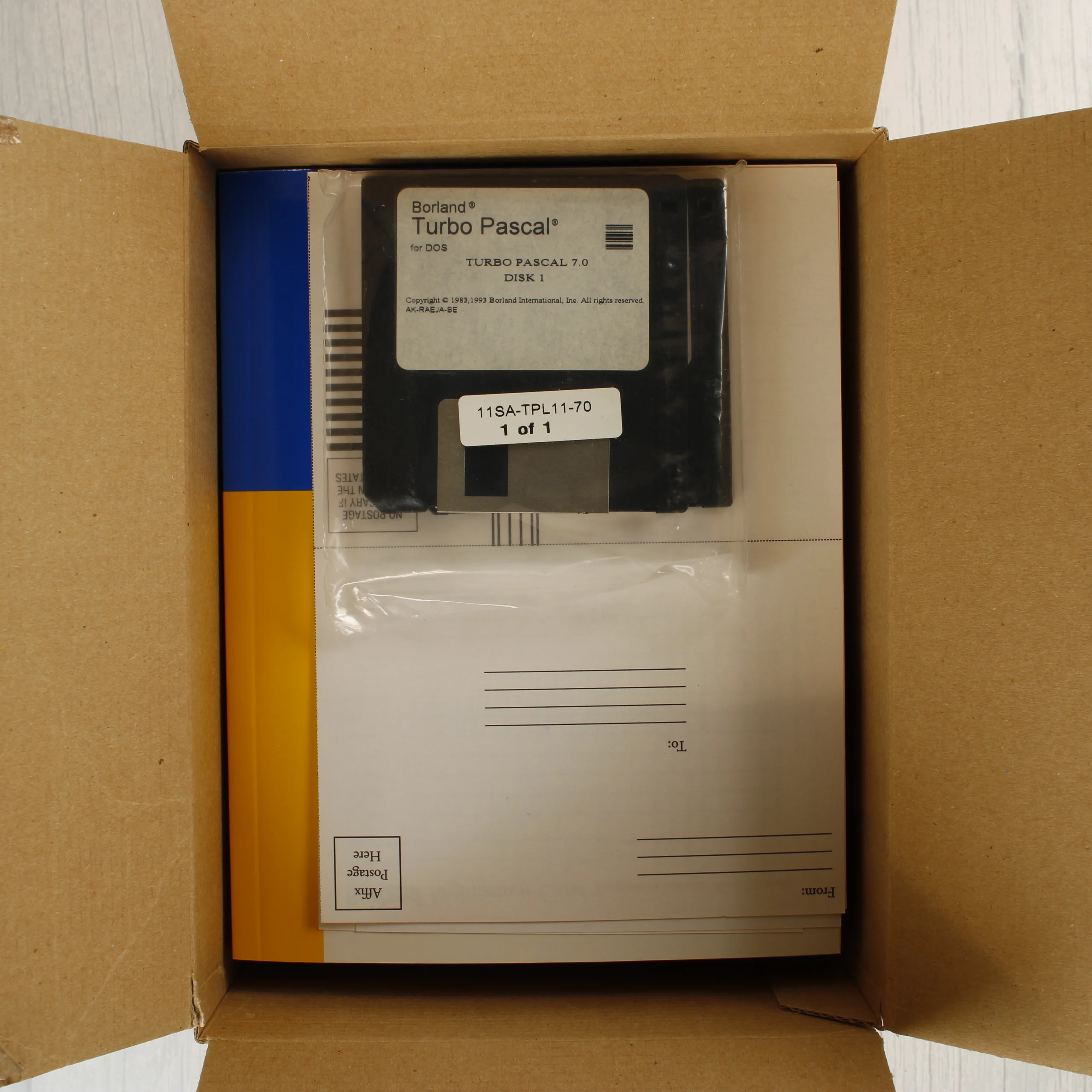 Borland Turbo Pascal 7.0 for DOS szoftvercsomag eredeti dobozban, kézikönyvekkel és 3,5 colos floppy lemezzel.