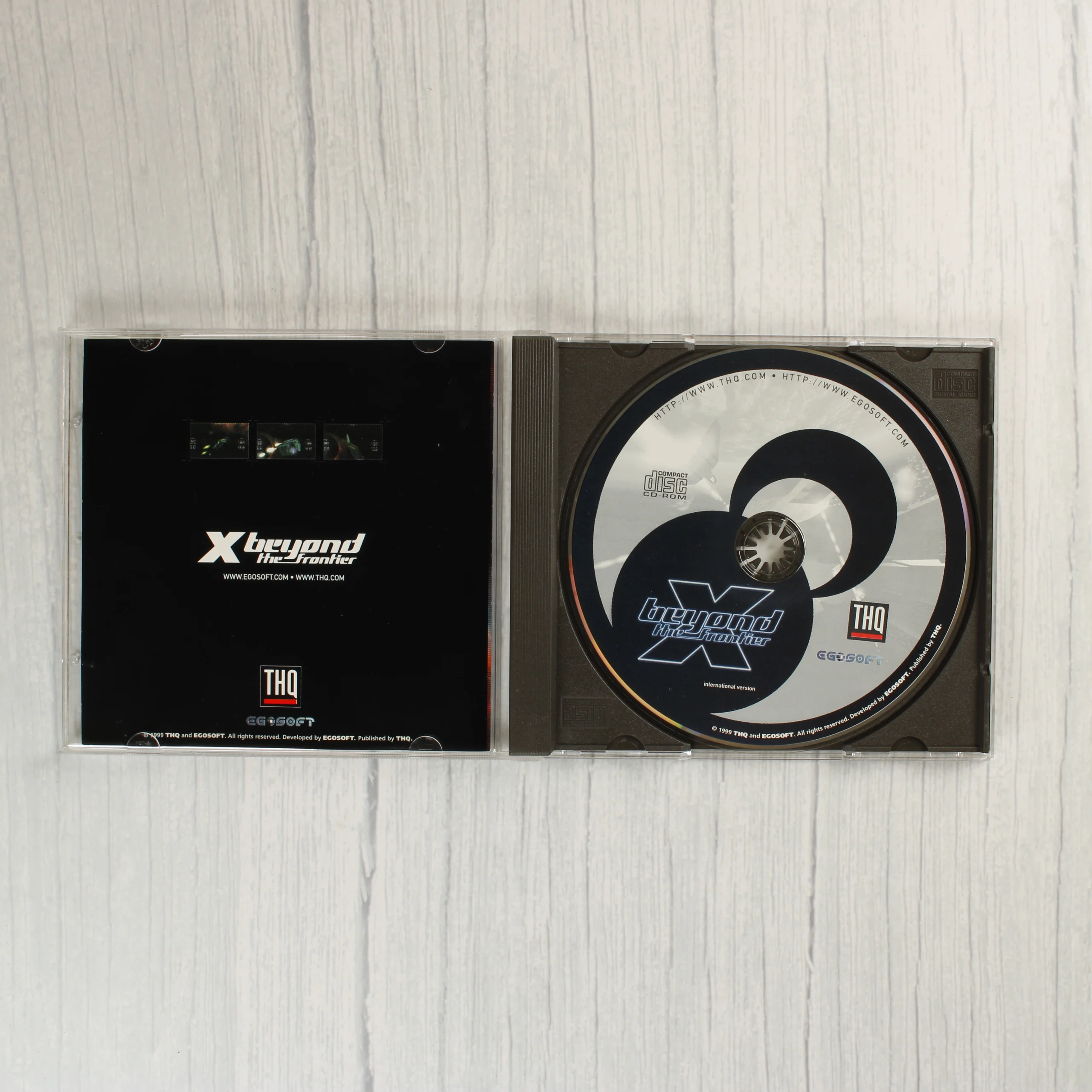 Az X: Beyond the Frontier egy 1999-es kiadású űrszimulációs videójáték PC platformra. A csomag tartalmazza az eredeti kartondobozt, a használati útmutatót, valamint a játékot tartalmazó CD-ROM-ot egy normál CD-tokban. A doboz grafikája egy űrbéli jelenetet ábrázol a játék logójával és a THQ, valamint az Egosoft emblémájával. A hátoldalon többnyelvű (angol, olasz, spanyol) leírás és képernyőmentések láthatóak a játékmenetből. A CD-ROM felülete fekete-ezüst dizájnt kapott, rajta a weboldalak címeivel és a kiadói adatokkal. A kézikönyv borítója megegyezik a doboz fő grafikájával.