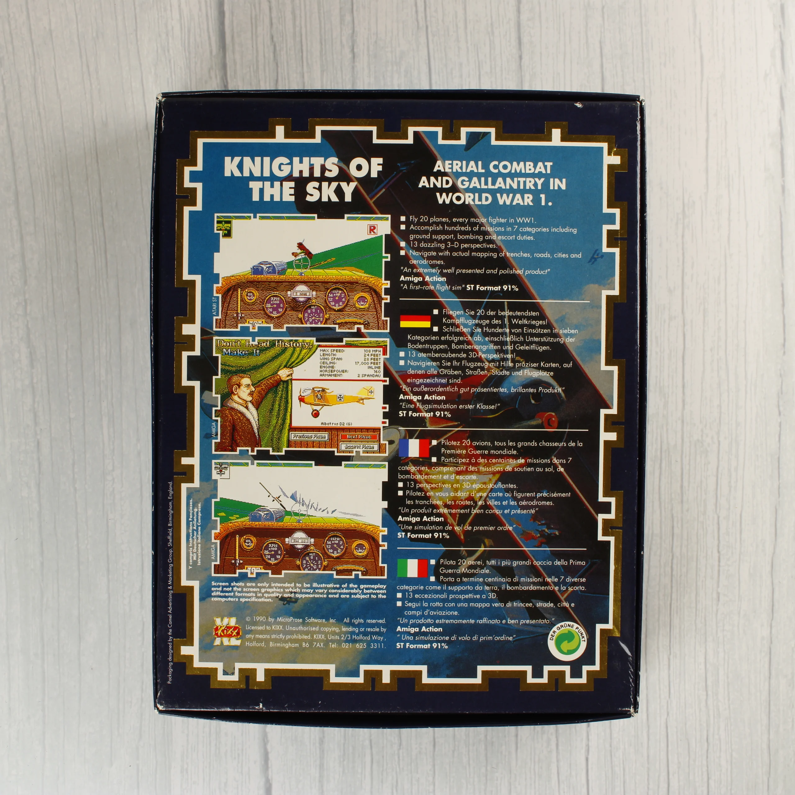 Knights of the Sky, MicroProse, Amiga, videójáték, retro, repülőgép szimulátor, floppy lemez, Kixx XL