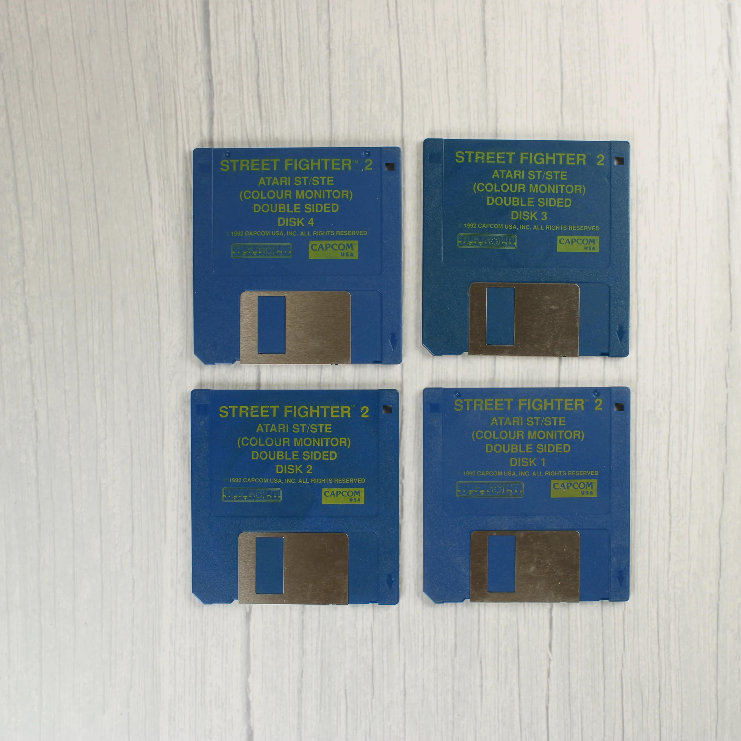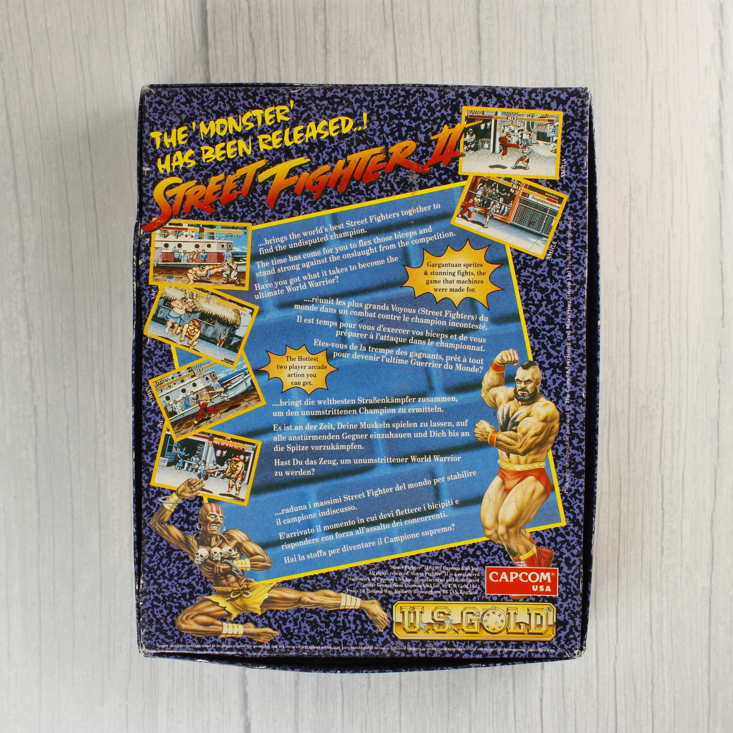 A Street Fighter II videójáték Atari ST/STE platformra készült kiadása. A csomag tartalmazza az eredeti illusztrált kartondobozt, egy színes kézikönyvet és négy darab kék színű, 3,5 colos floppy lemezt. A doboz elején Blanka és Chun-Li harca látható, mellette a választható karakterek portréival. A hátoldalon többnyelvű leírás és játékmenet-fotók kaptak helyet. A lemezeken sárga felirat jelzi a sorszámokat és a technikai követelményeket, mint például a színes monitor használatát. A kiadvány a Capcom licence alapján az U.S. Gold gondozásában jelent meg. A doboz élei mentén látható némi kopás, de a grafika ép és élénk marad.