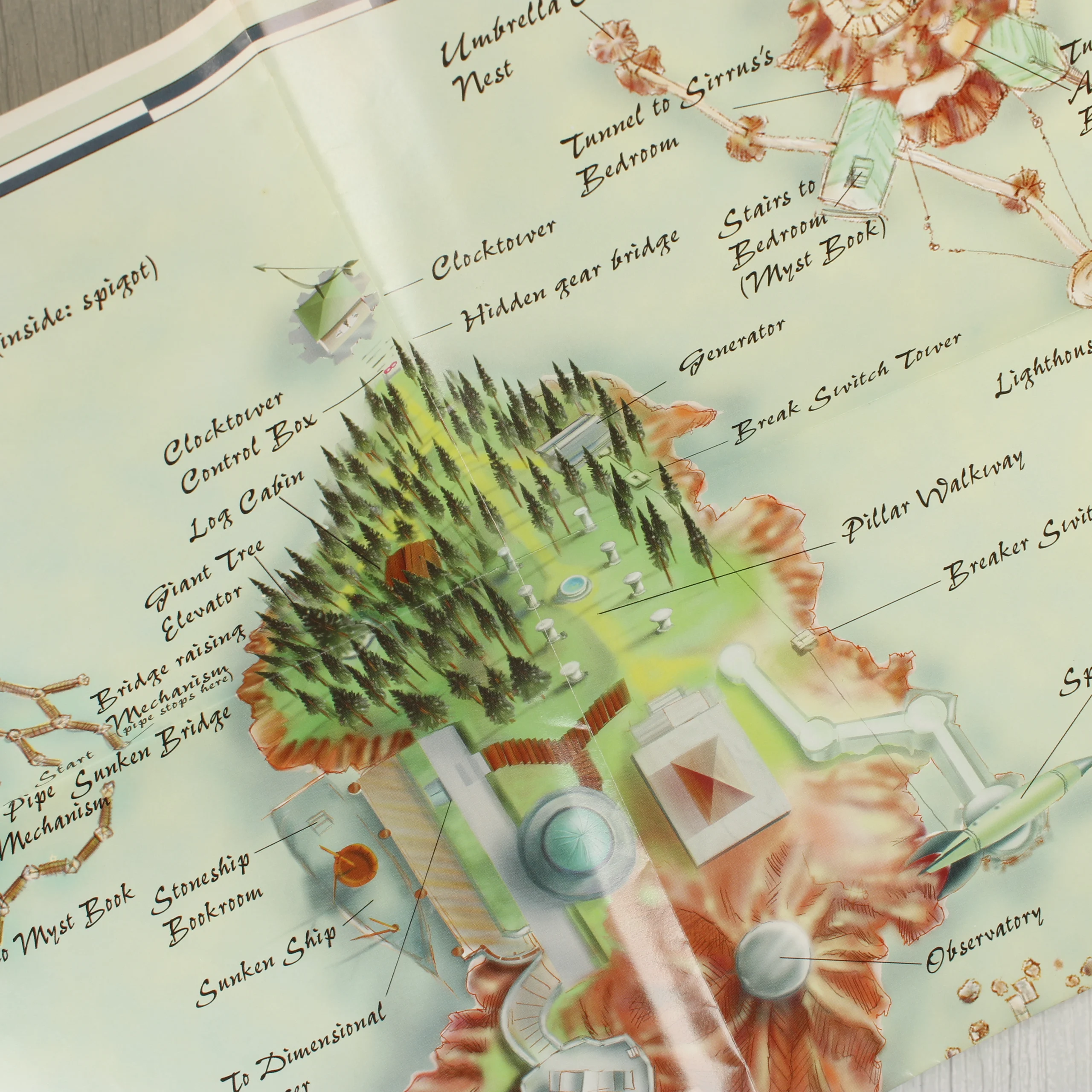A Myst című videójáték Limited Edition kiadása PC és Mac platformra. A csomag tartalmazza az eredeti, nagyméretű kartondobozt, amelyen a játék címe és a Limited Edition felirat látható. A doboz fekete alapszínű, az éleken és a sarkokon jelentős kopás, valamint kisebb szakadások és gyűrődések figyelhetők meg. A készlet része egy többnyelvű felhasználói kézikönyv, egy kék színű CD-ROM lemez normál CD-tokban, valamint egy színes, illusztrált térkép a játék helyszínéről. A lemez felületén a Brøderbund és a Cyan logója látható. A doboz hátoldalán játékmenet-képek és angol nyelvű leírás olvasható. A belső tartalmak, mint a kézikönyv és a térkép, megkímélt állapotúnak tűnnek, míg a külső papírdobozon az idő és a használat nyomai egyértelműen látszanak.