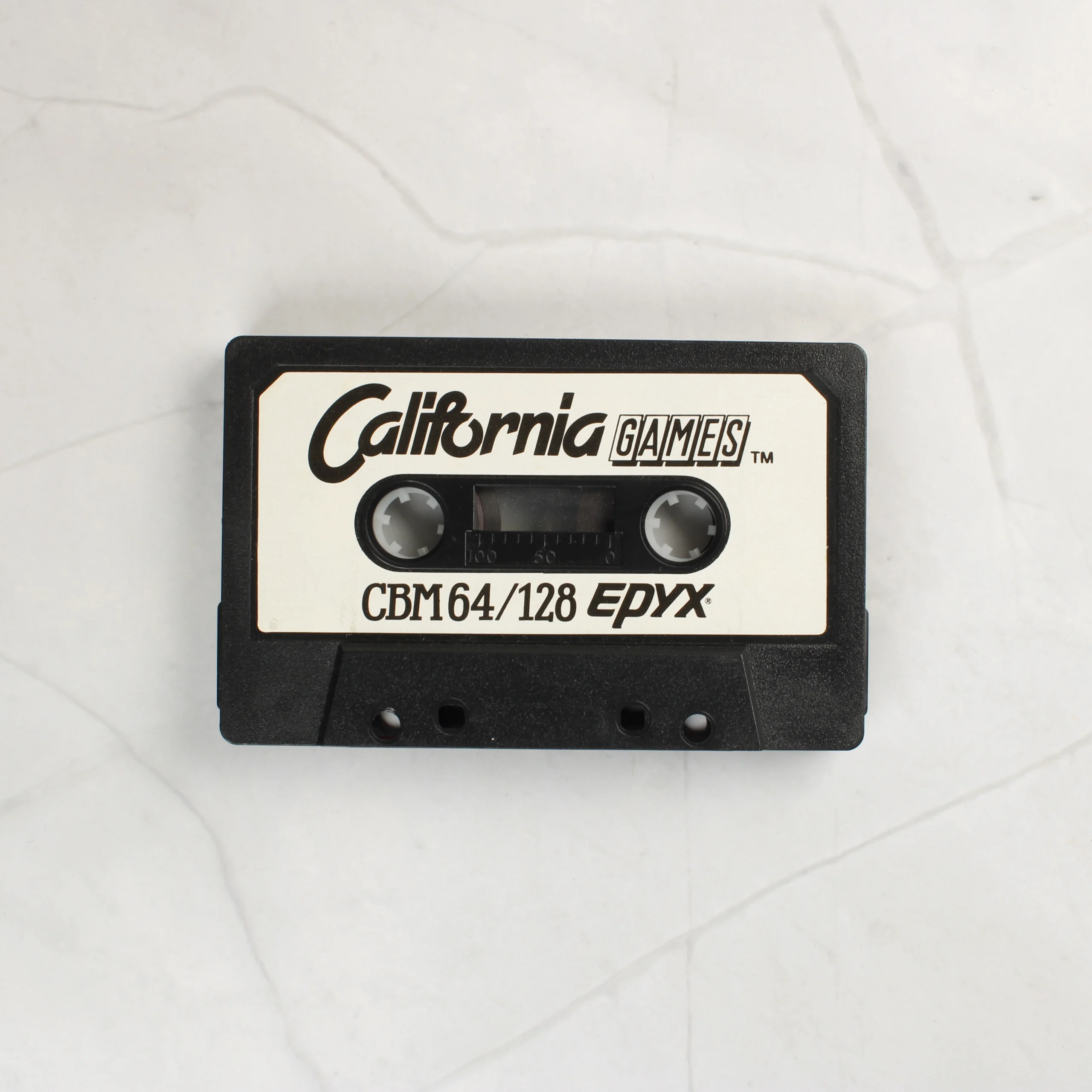 A California Games egy klasszikus sport videójáték Commodore 64 és 128 platformokra. A csomag tartalmazza az eredeti, színes illusztrációval ellátott papírborítót, egy átlátszó műanyag tokot és egy fekete színű mágnesszalagos kazettát. A borítón különféle nyári sportokat ábrázoló grafikák láthatóak, mint például a szörfözés, gördeszkázás és BMX kerékpározás. A hátoldalon angol nyelvű leírás és képernyőmentések találhatók a játékmenetről. A kazetta fehér címkéjén fekete felirat jelzi a címet és a kiadót. A termék fizikai adathordozón tárolt szoftver, amely az 1980-as évek végéről származik.