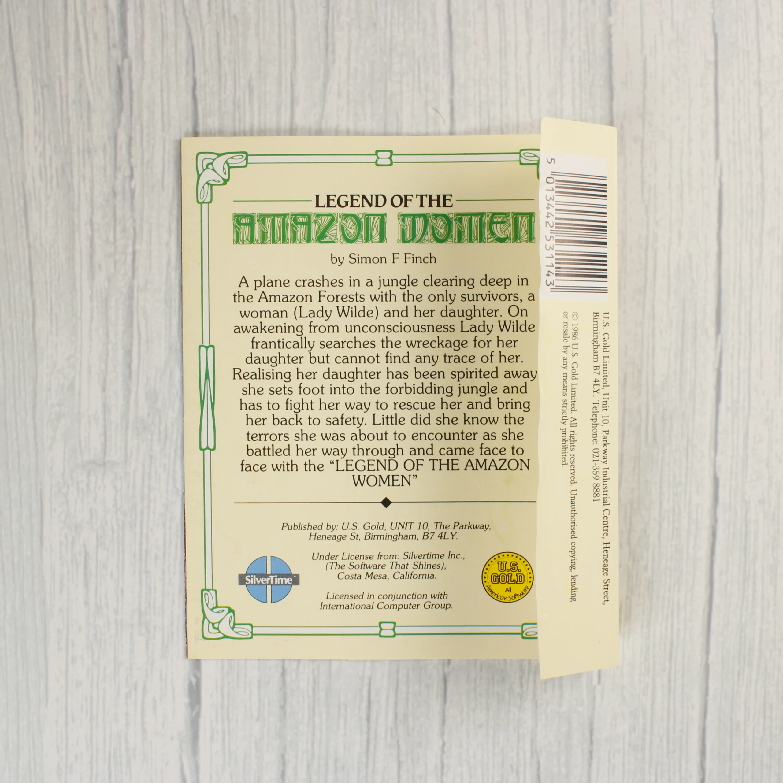 A Legend of the Amazon Women című videójáték ZX Spectrum 48K platformra készült kiadása. A csomag tartalmaz egy eredeti műanyag tokot, egy színes borítót és egy fekete színű mágnesszalagos kazettát. A borítón fantasy stílusú illusztráció látható, amely amazonokat, dinoszauruszokat és egy kardfogú tigrist ábrázol. A kazetta fehér címkével rendelkezik, amelyen a játék címe és a Spectrum felirat olvasható. A borító hátoldalán a történet leírása, a kiadó adatai (U.S. Gold, SilverTime) és egy vonalkód található. A termék fizikai adathordozója egy szabványos magnókazetta.