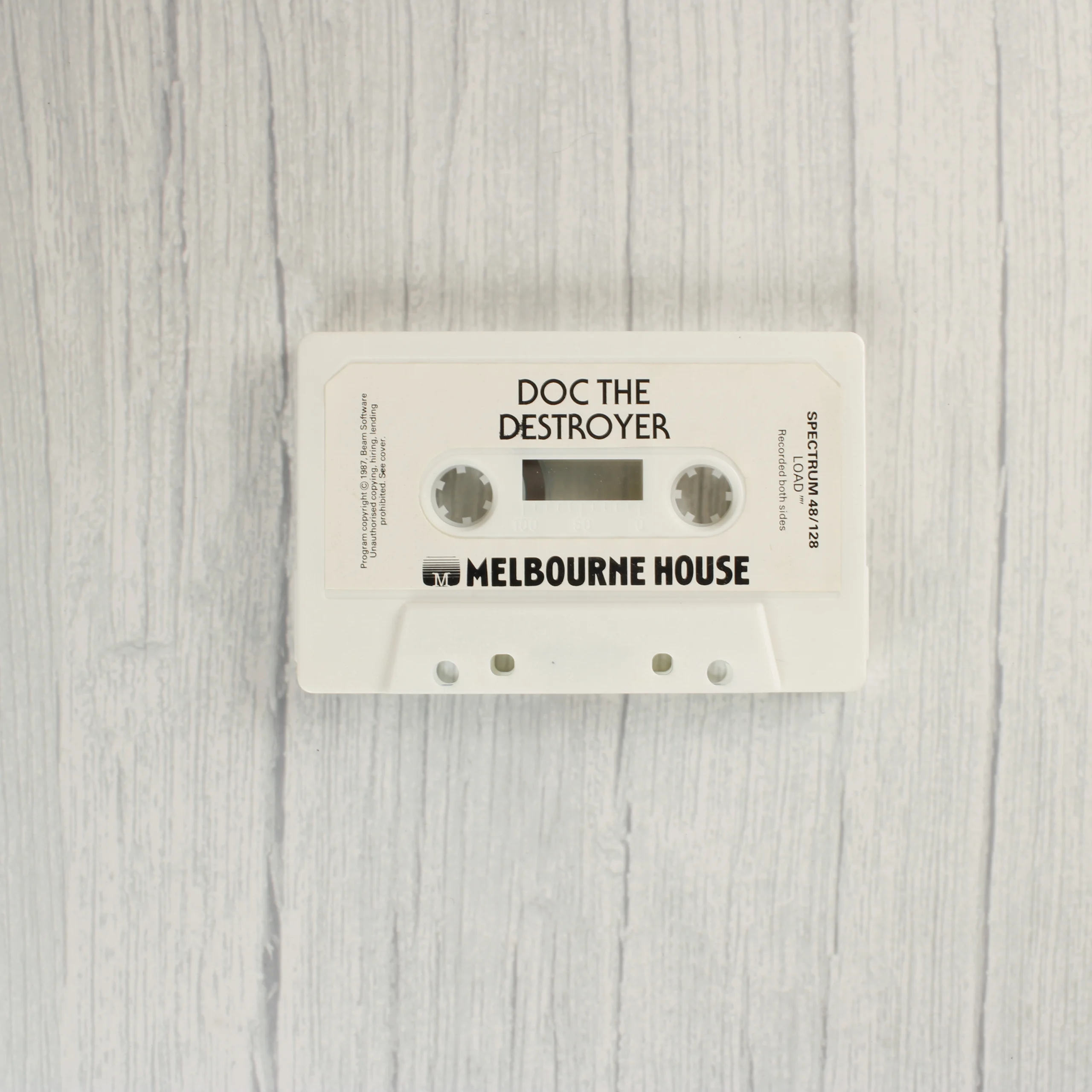 Doc the Destroyer videójáték ZX Spectrum 48/128 számítógépre, eredeti kazettás formátumban, Melbourne House kiadásban.