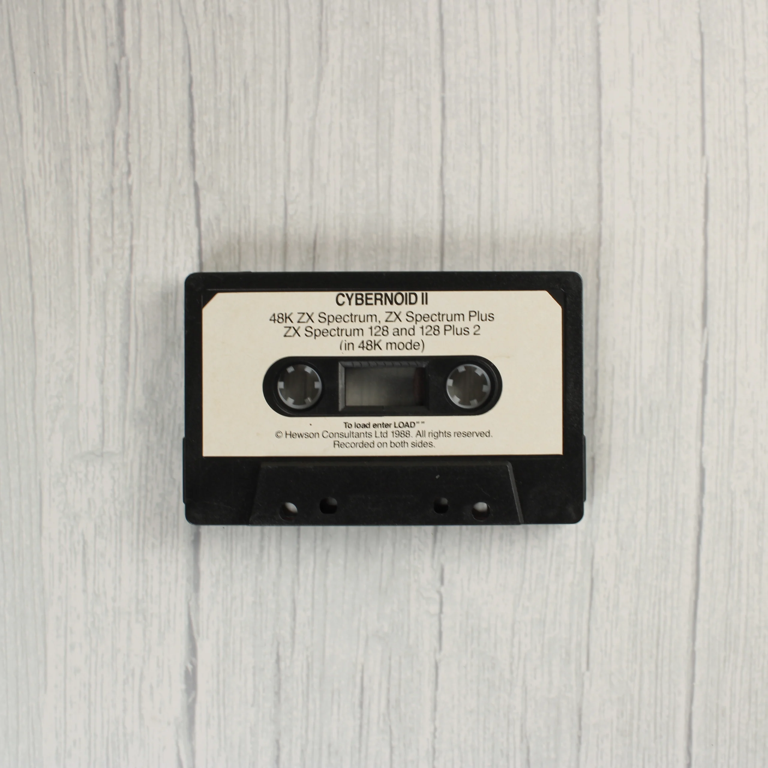 A Cybernoid II: The Revenge című videójáték ZX Spectrum platformra készült kiadása. A csomag tartalmaz egy átlátszó műanyag tokot, egy színes papírborítót és egy fekete színű magnókazettát. A borító elején egy vörös űrhajó látható akció közben, a hátoldalon pedig három képernyőkép és a játék rövid leírása szerepel angol nyelven. A kazettán fehér címke található, amelyen a játék címe és a kompatibilis hardverek listája olvasható. A kiadvány a Hewson gondozásában jelent meg 1988-ban. A tok és a borító állapota megkímélt, a kazetta címkéje tiszta és jól olvasható.