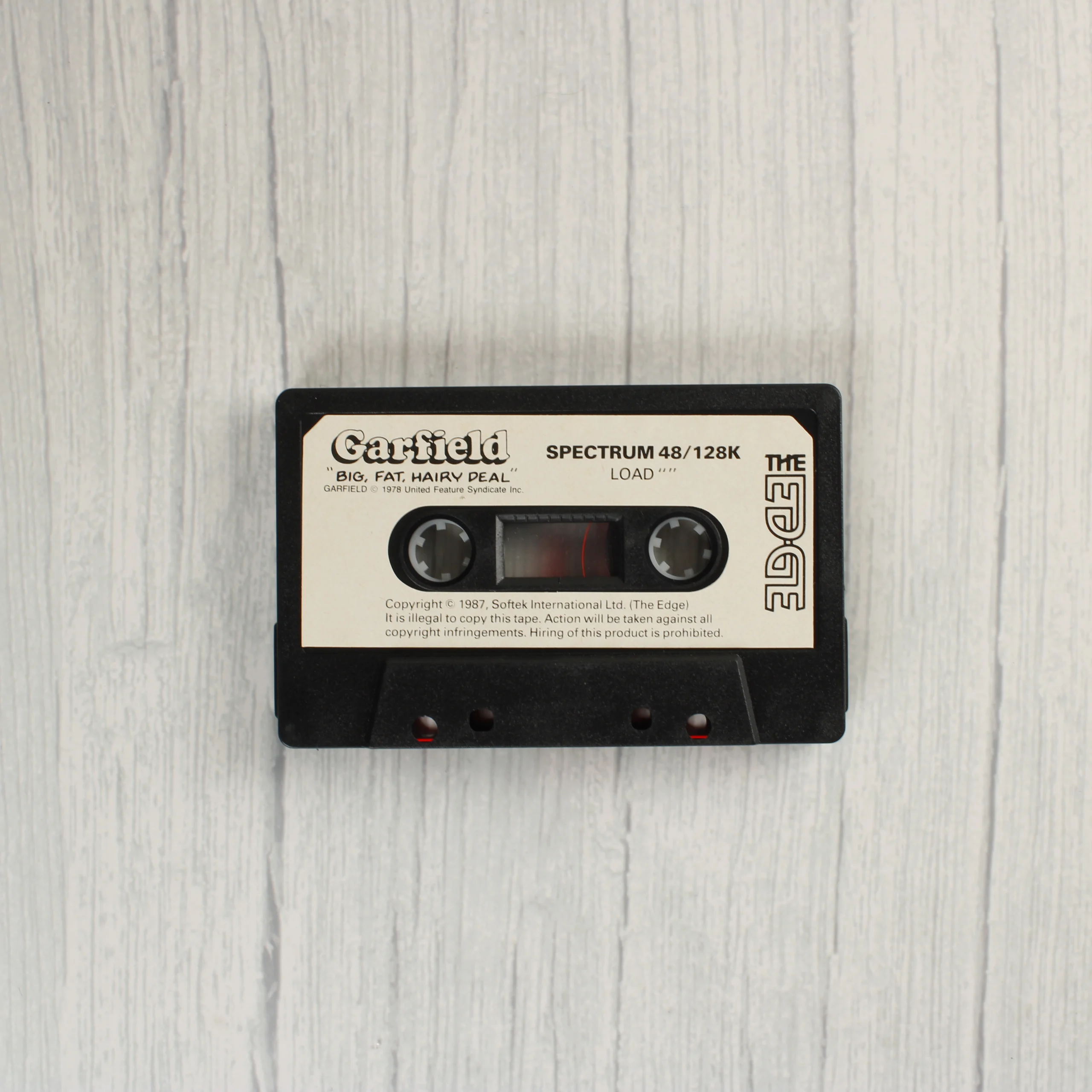 A Garfield: Big, Fat, Hairy Deal egy klasszikus videójáték ZX Spectrum 48/128K platformra. A csomag tartalmazza az eredeti műanyag tokot, a színes papírborítót és a fekete színű mágnesszalagos kazettát. A borító előlapján Garfield karaktere látható narancssárga háttér előtt, a hátoldalon pedig angol nyelvű leírás és játékmenet-képek találhatók. A kazettán fehér címke látható fekete feliratokkal, amely tartalmazza a játék címét, a kiadót és a betöltési utasításokat. A termék a The Edge kiadásában jelent meg 1987-ben. A fizikai hordozó egy szabványos magnókazetta formátumú egység.